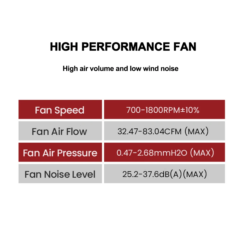Flujo de aire del ventilador: 32,47-83,04 CFM(MAX)