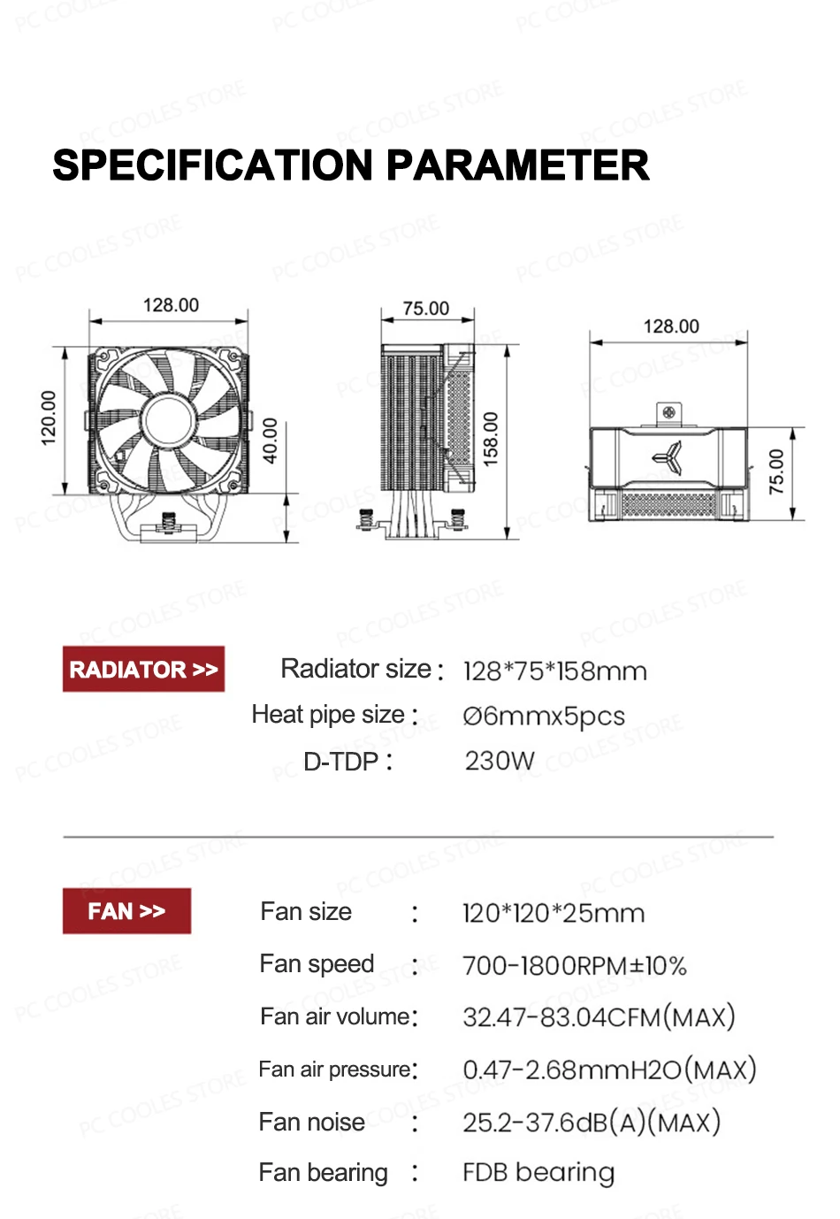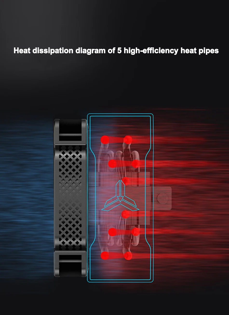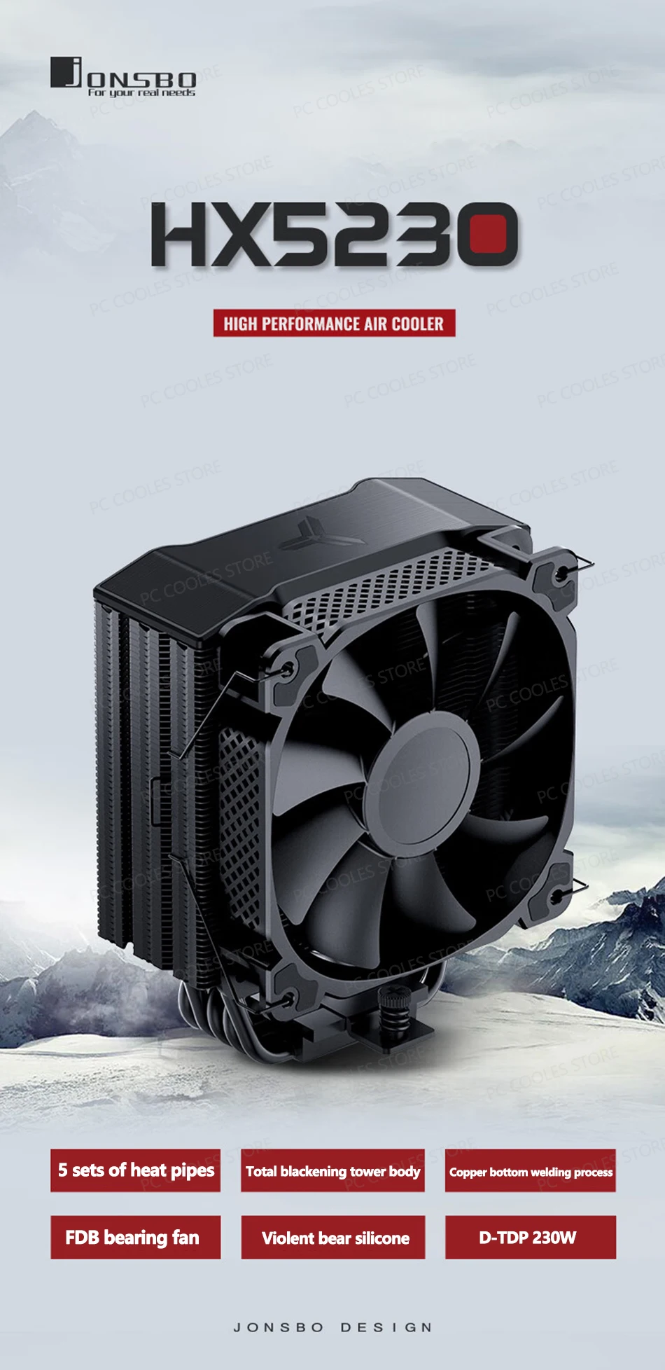 Comprar JONSBO-enfriador de CPU HX5230, 5 tubos de calor, 12cm, PWM, ventilador de refrigeración silencioso, rodamiento FDB, radiador refrigerado por aire Intel LGA1700 115X 1200 AM4 AM5