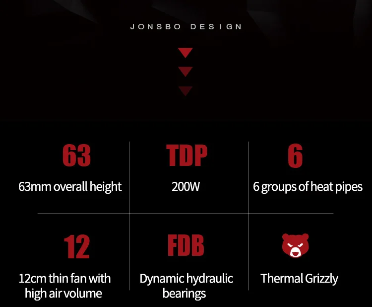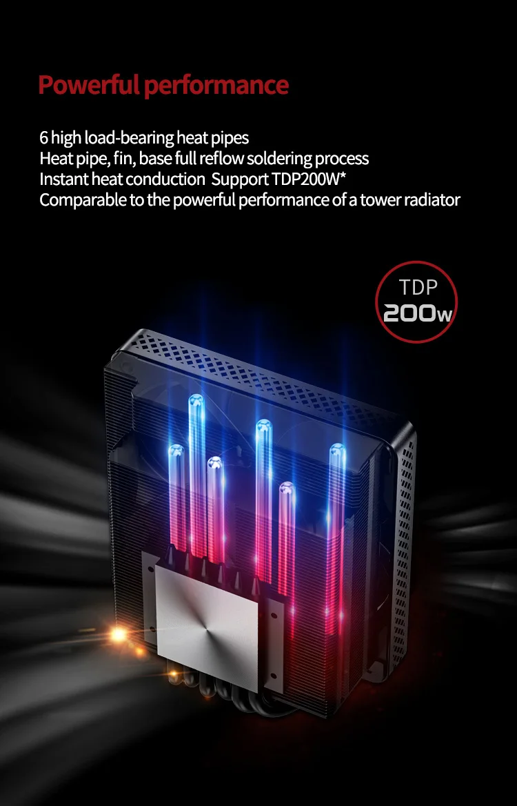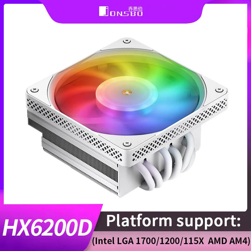CPU Cooler Jonsbo HX6200D Radiator White Air-Cooled Downward Pressure 6 Heat Pipe ARGB Cooler Intel 755 115X 1200 AM2 AM3 AM4
