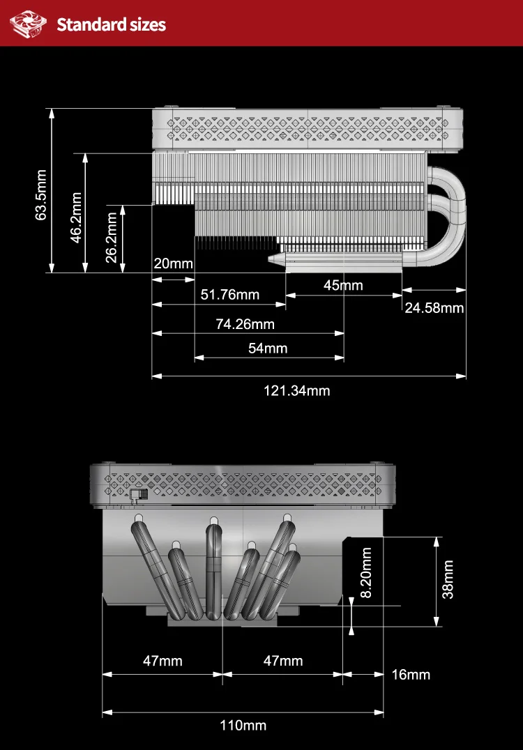 Radiator size: 120 mm(L)*120mm(W)*63mm(H)