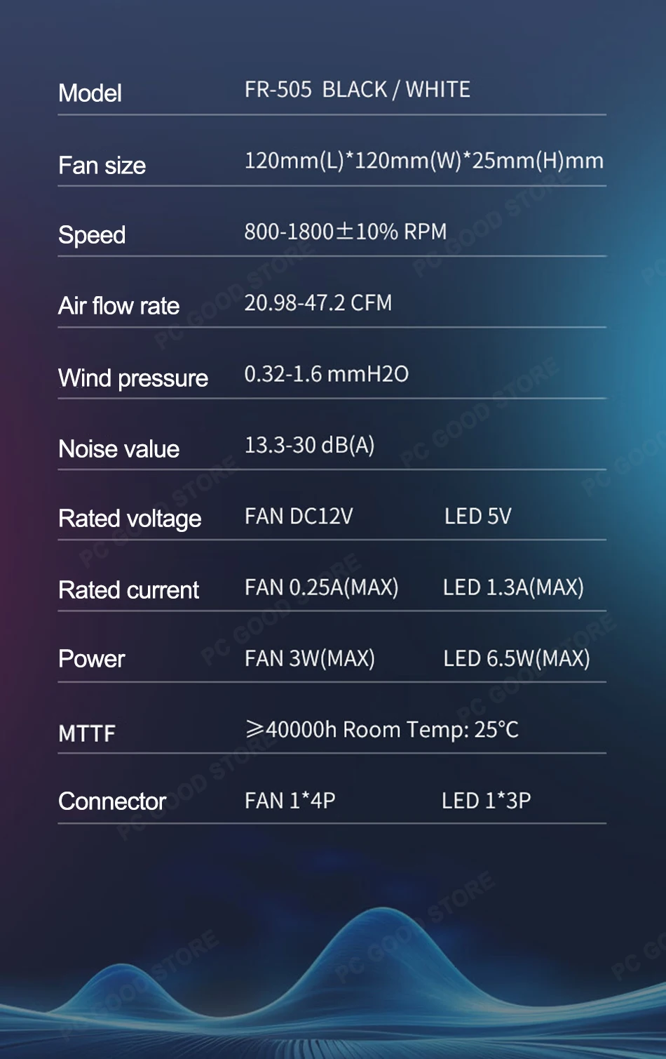 Tamaño del ventilador: 120 mm (largo) * 120 mm (ancho) * 25 mm (alto)