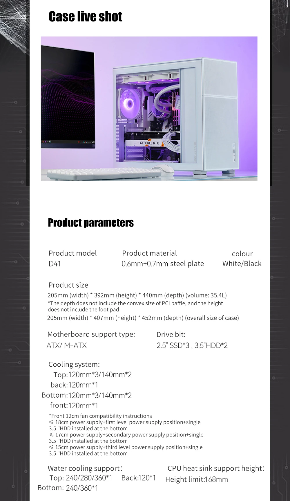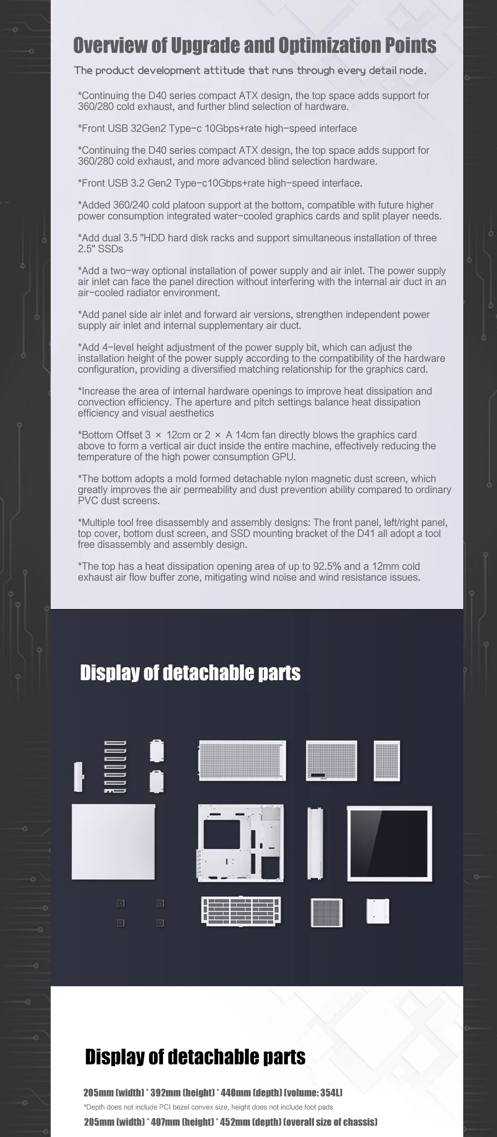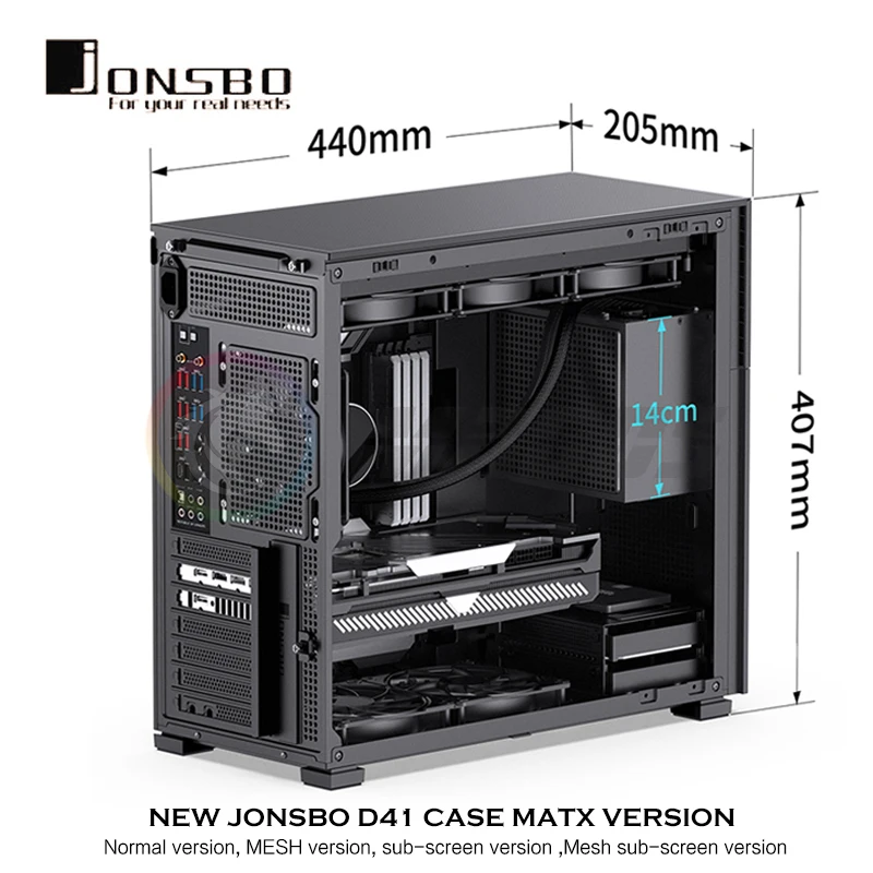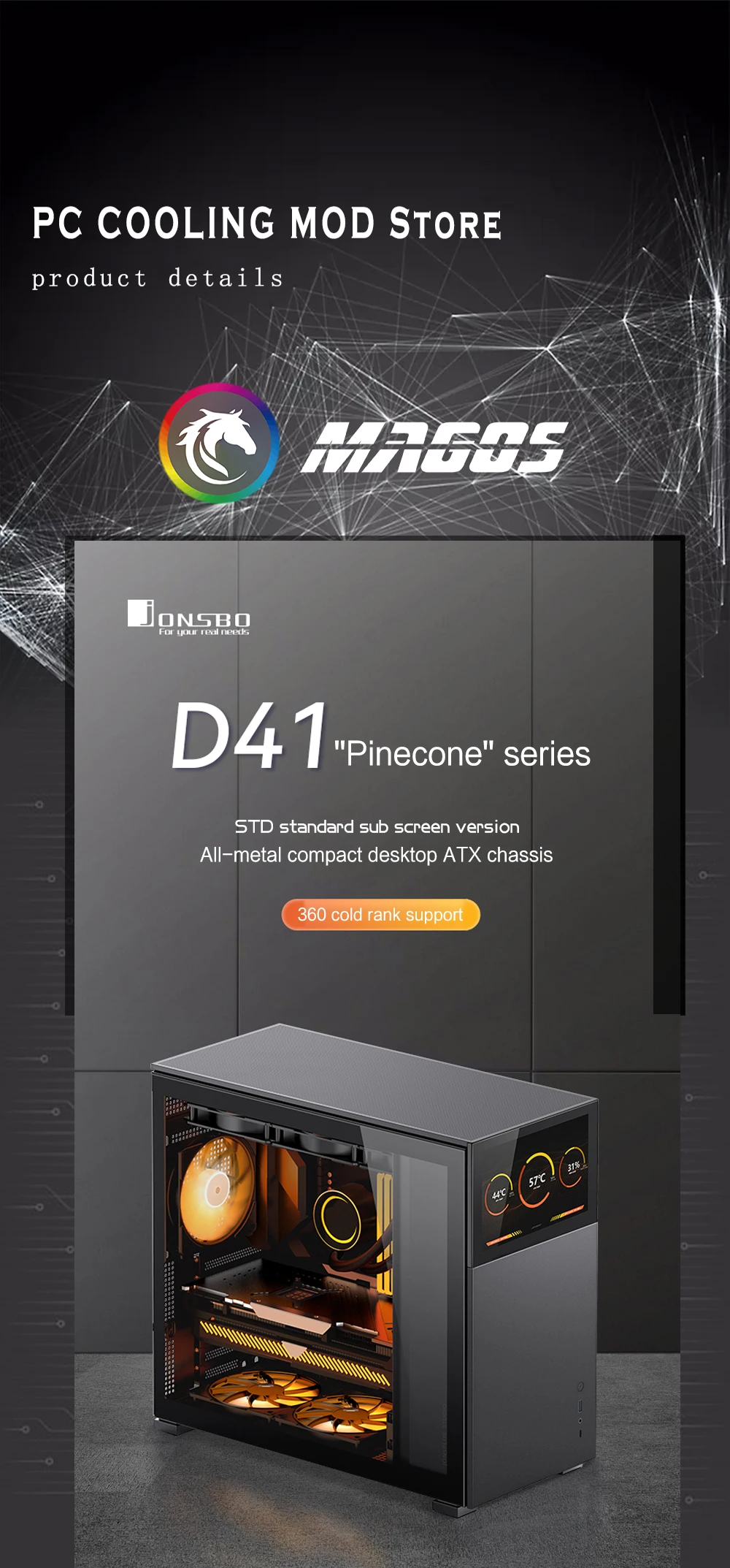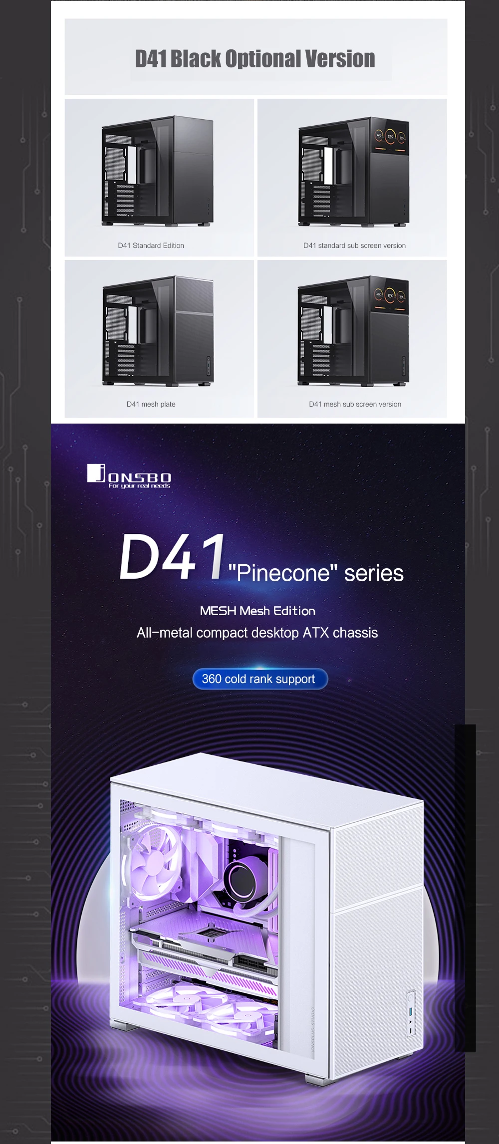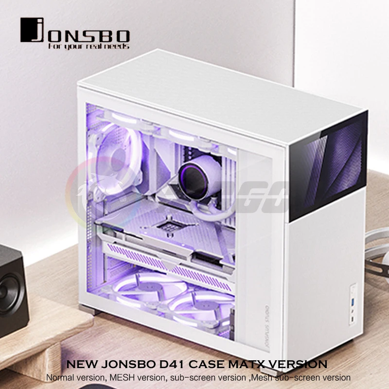 Comprar JONSBO-funda ATX de malla D41, soporte Dual 360 fila fría, fuente de alimentación ATX estándar, pantalla secundaria de 8 ", negro y blanco