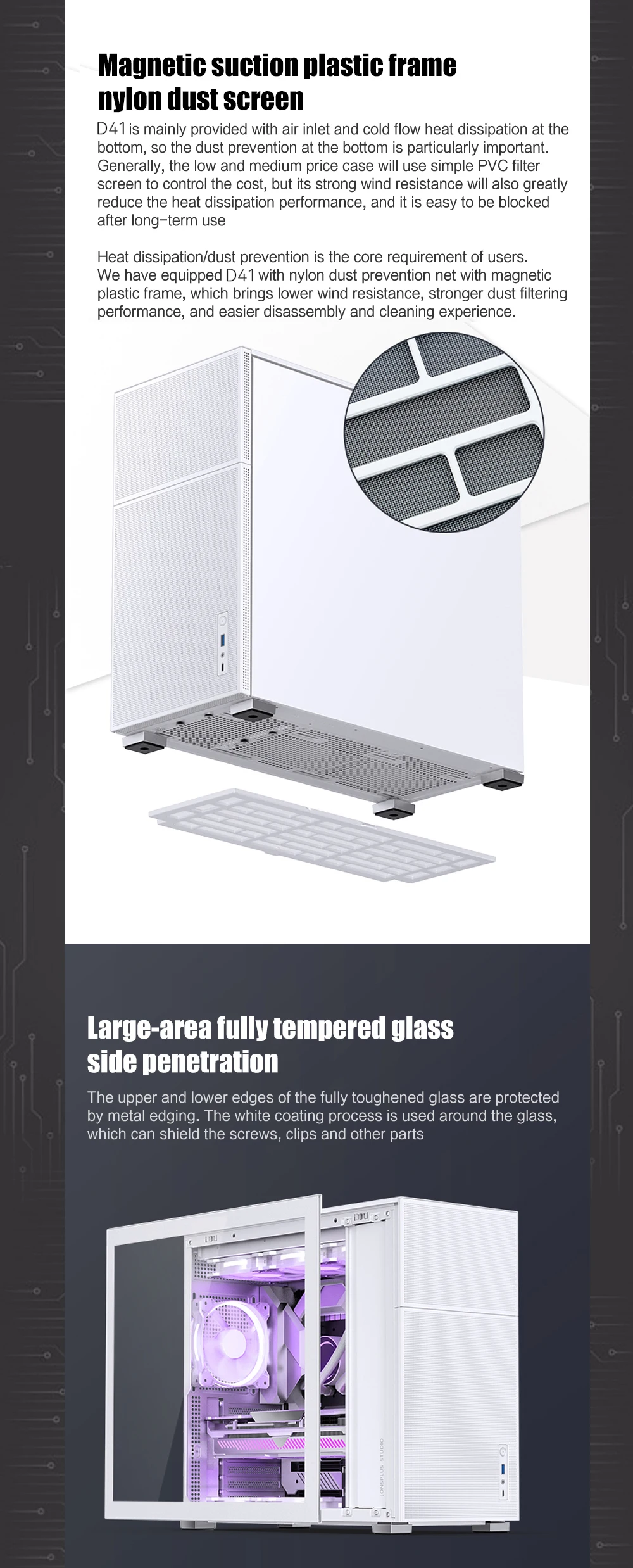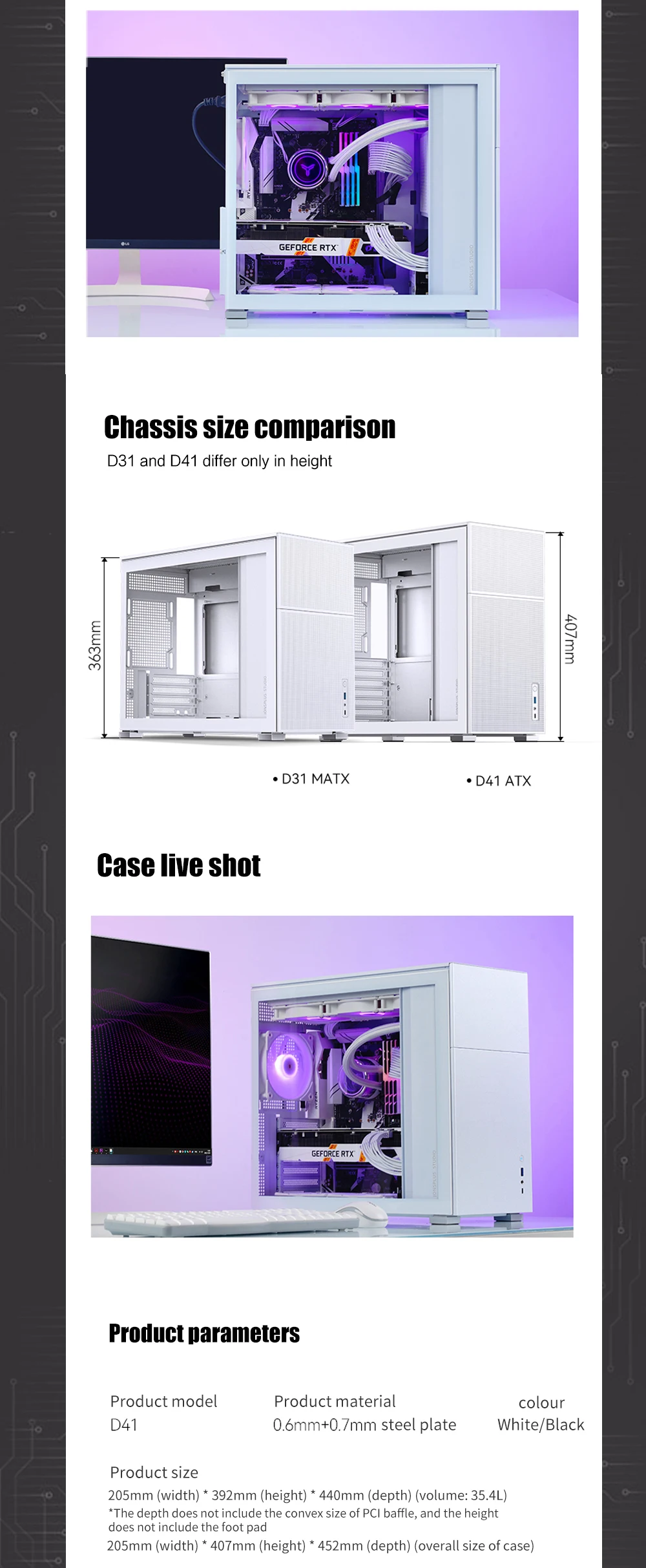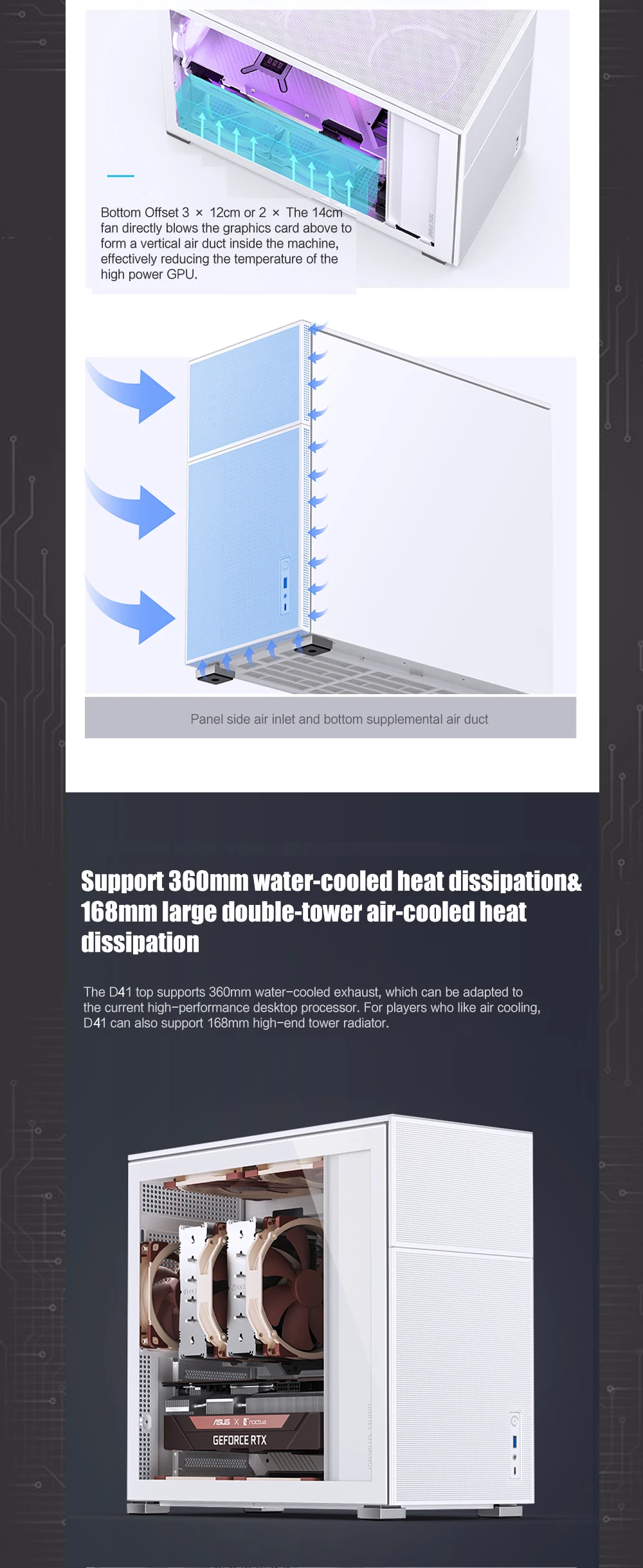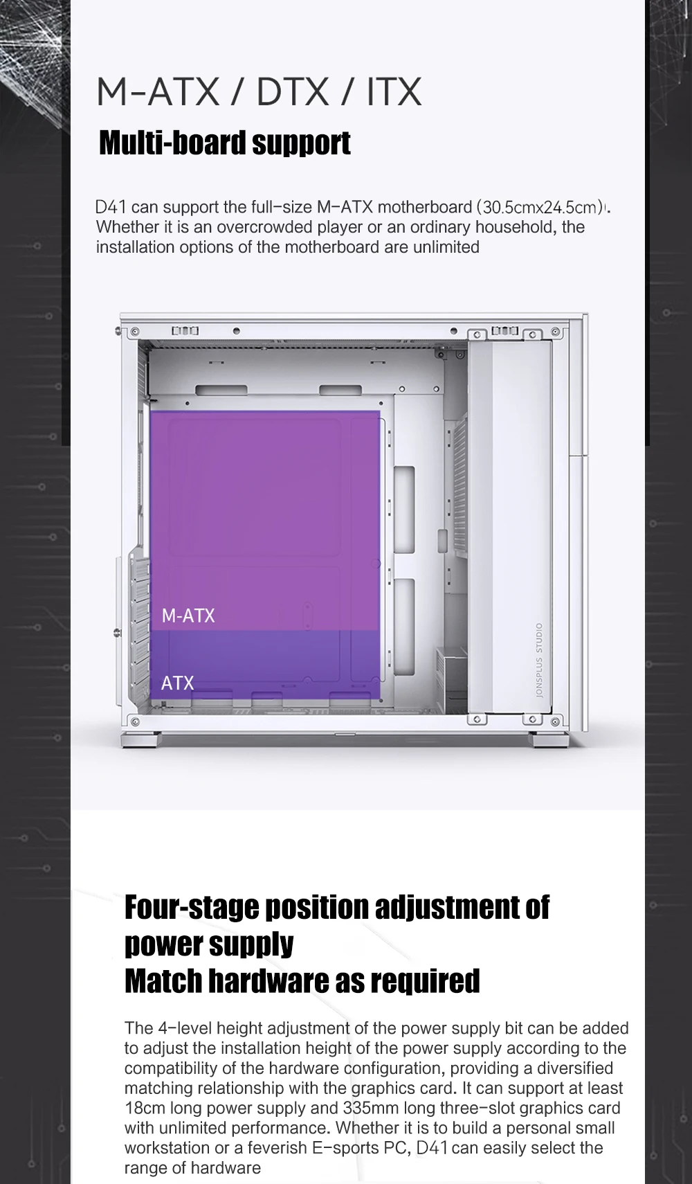 Comprar JONSBO-funda ATX de malla D41, soporte Dual 360 fila fría, fuente de alimentación ATX estándar, pantalla secundaria de 8 ", negro y blanco