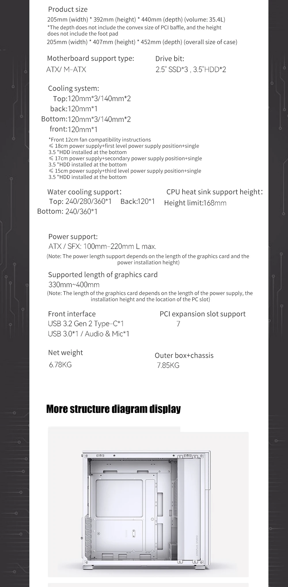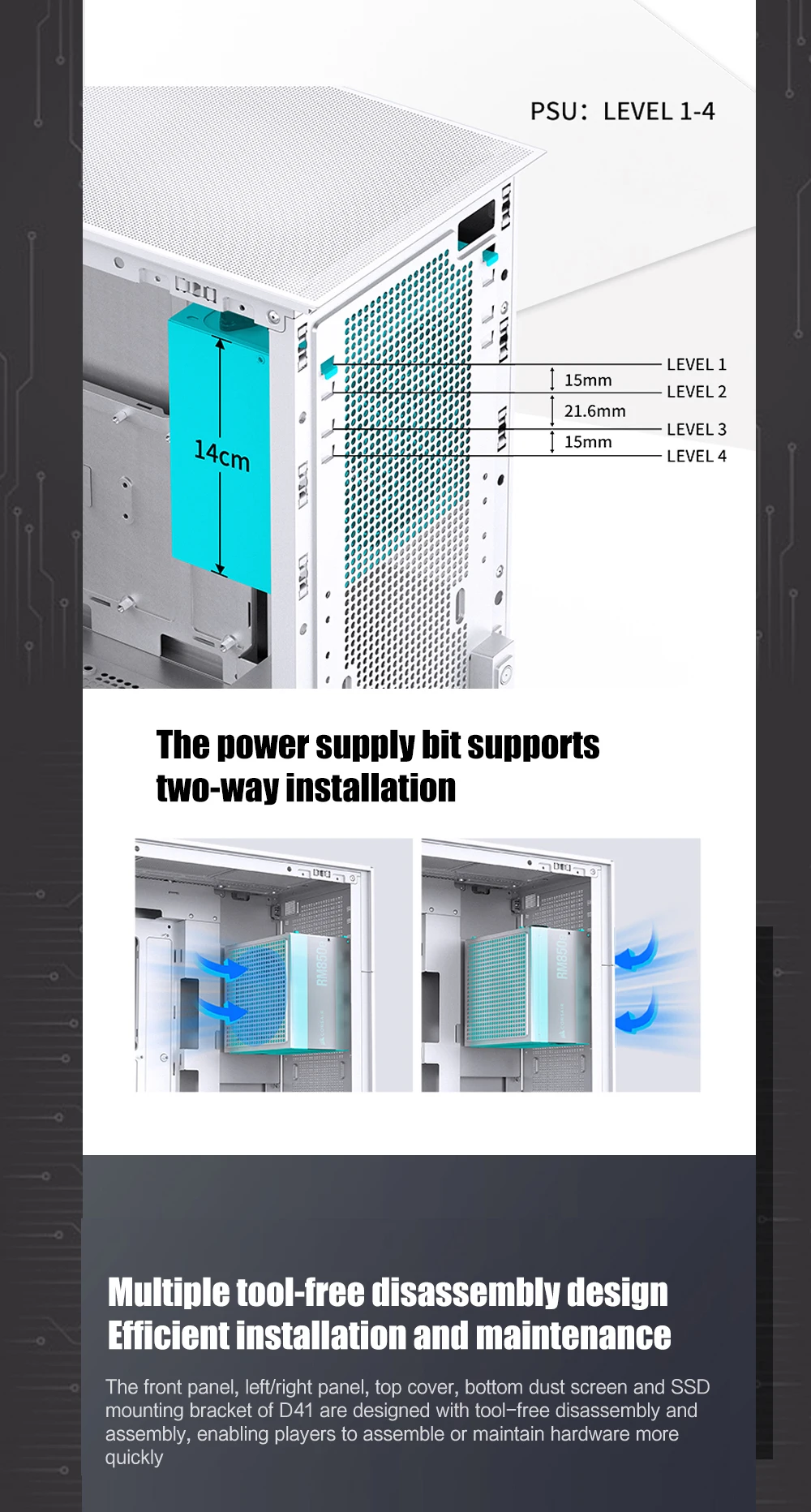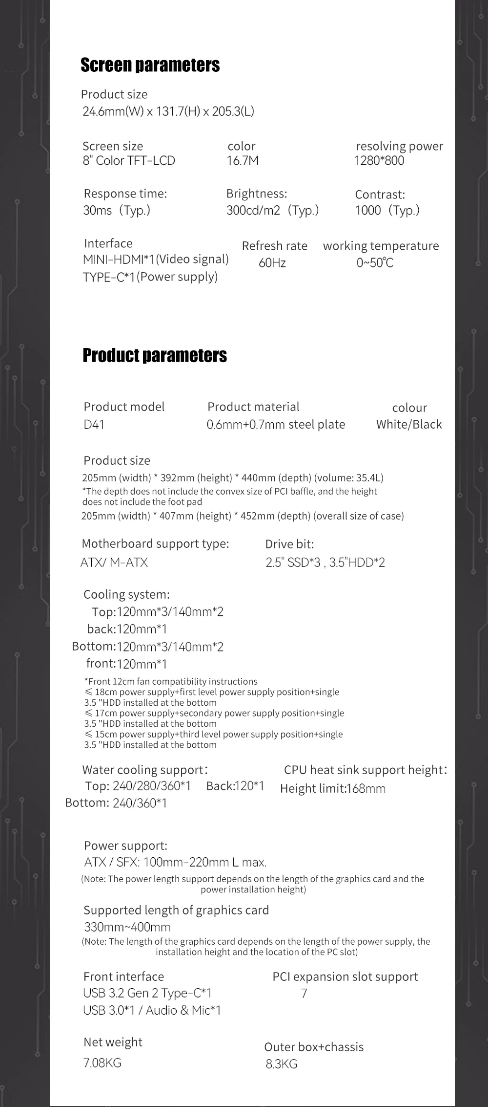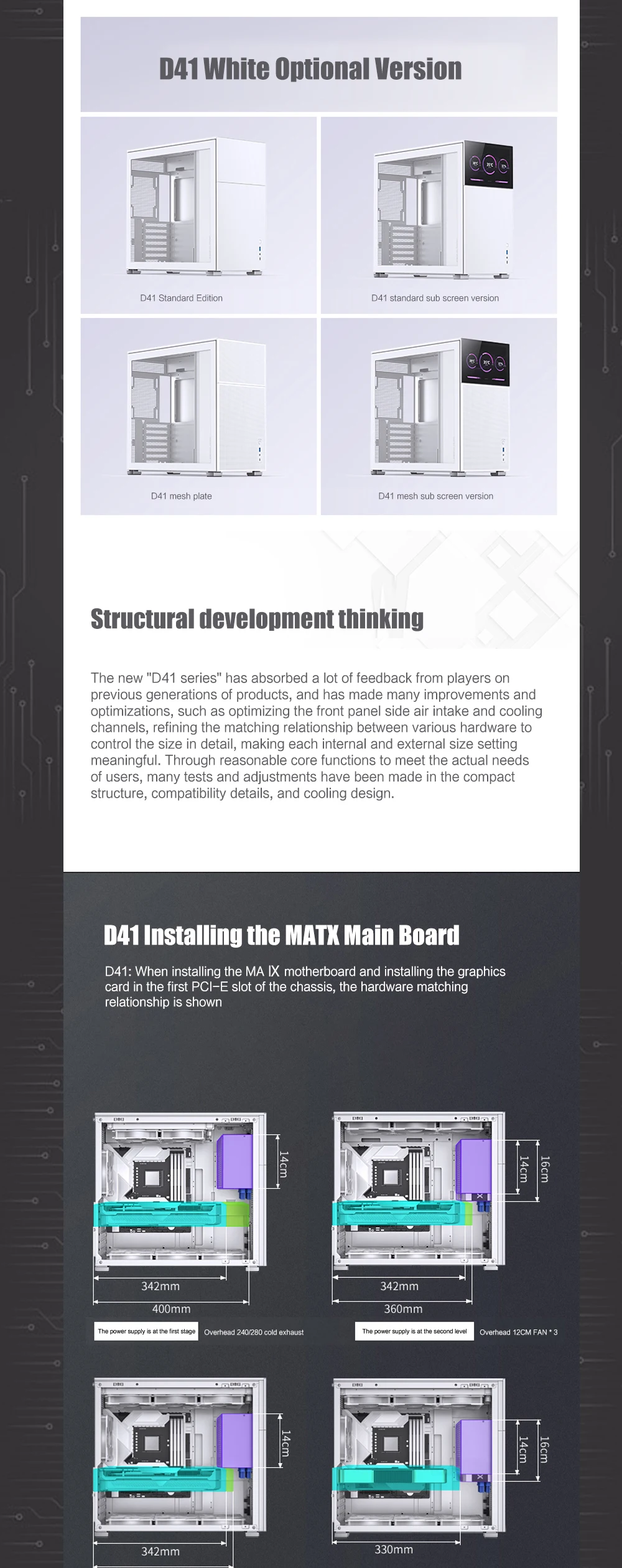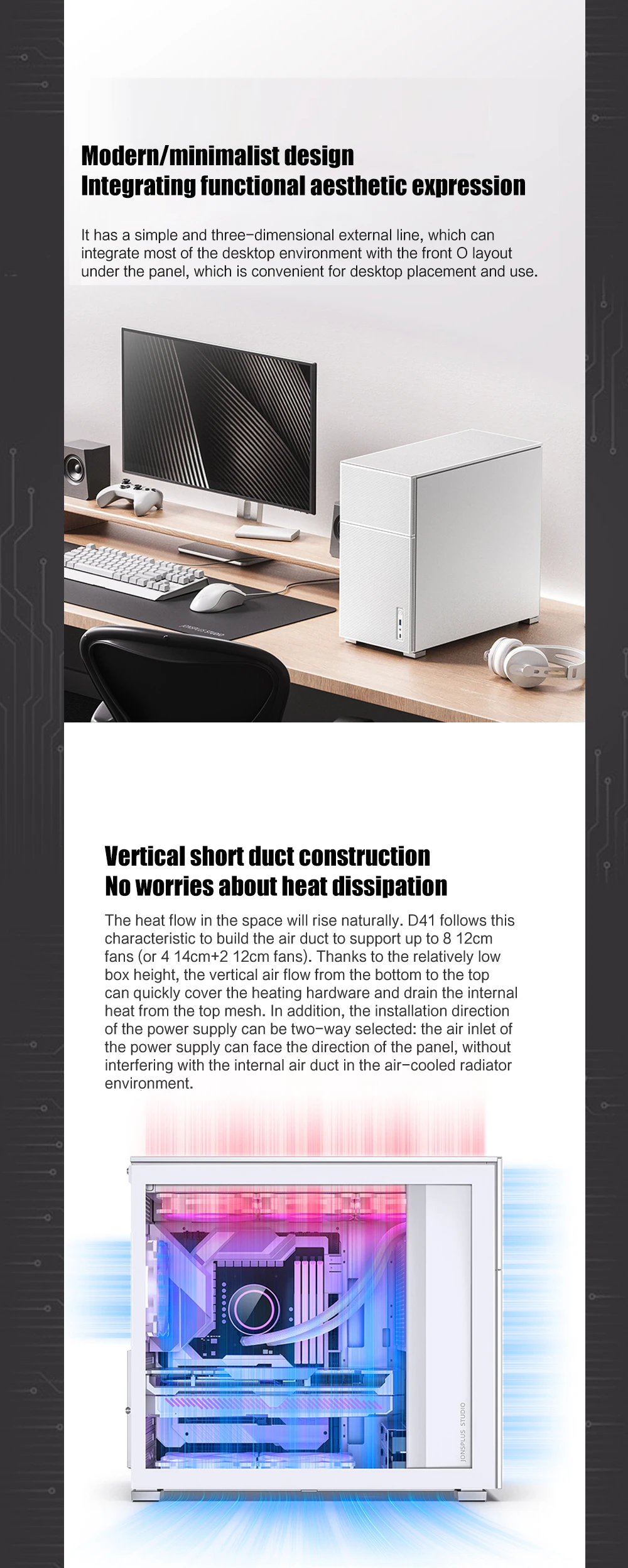 Comprar JONSBO-funda ATX de malla D41, soporte Dual 360 fila fría, fuente de alimentación ATX estándar, pantalla secundaria de 8 ", negro y blanco