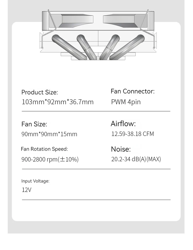 Tamaño del radiador: 103 mm (largo) * 92 mm (ancho) * 36,7 mm (alto)