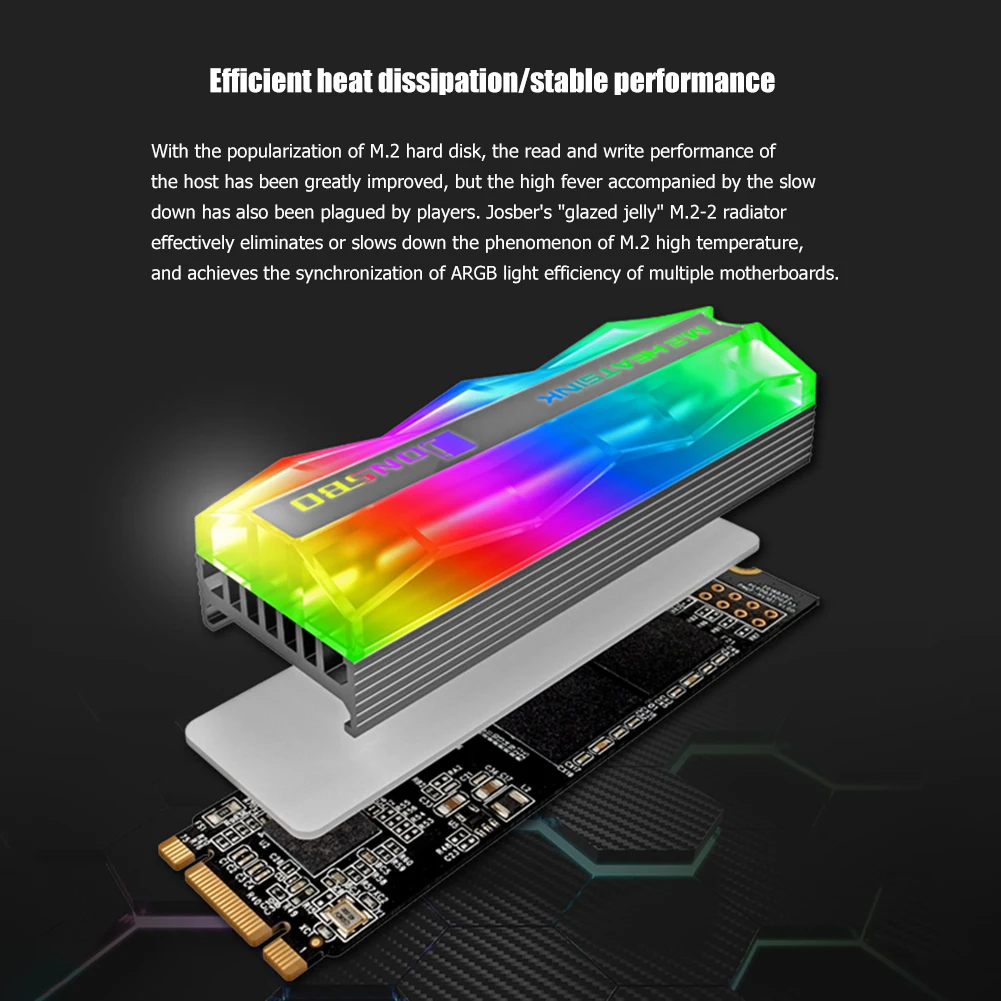 Jonsbo M.2-2 Hermosa iluminación M.2 SSD disipador de calor 5V 3 pines de estado sólido enfriador de disco duro radiador disipación térmica almohadilla de enfriamiento
