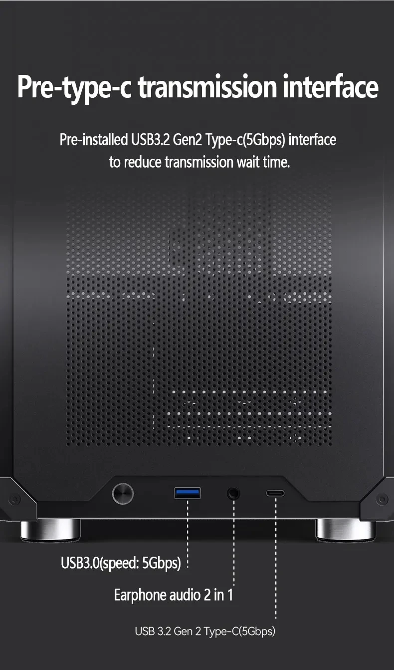 Puerto de E/S frontal: tipo C (20 pines)/USB3.0 * 1/AUDIO * 1 + MIC * 1 (2 en 1)