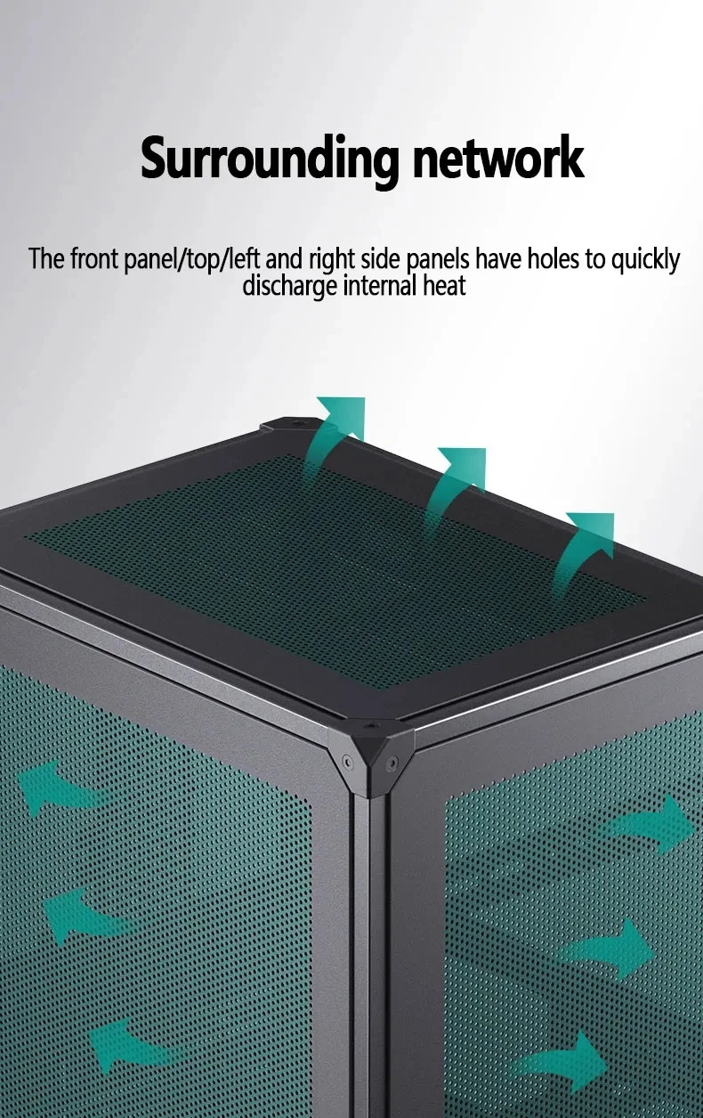 Ventilador (opcional): Superior 120mm * 1 o 140mm * 1, inferior 120mm * 1 o 140mm * 1, frontal 120mm * 1 o HDD