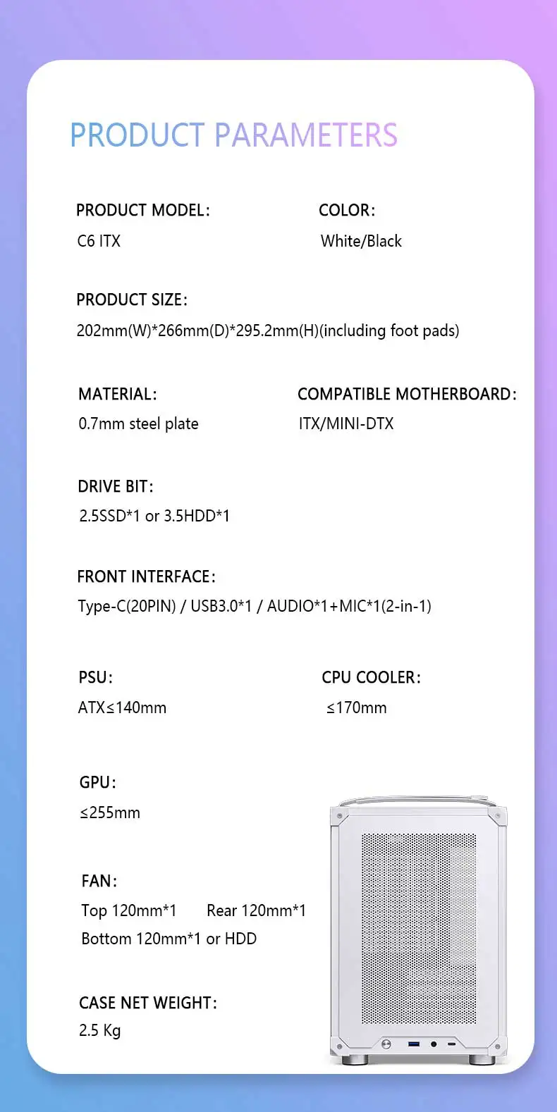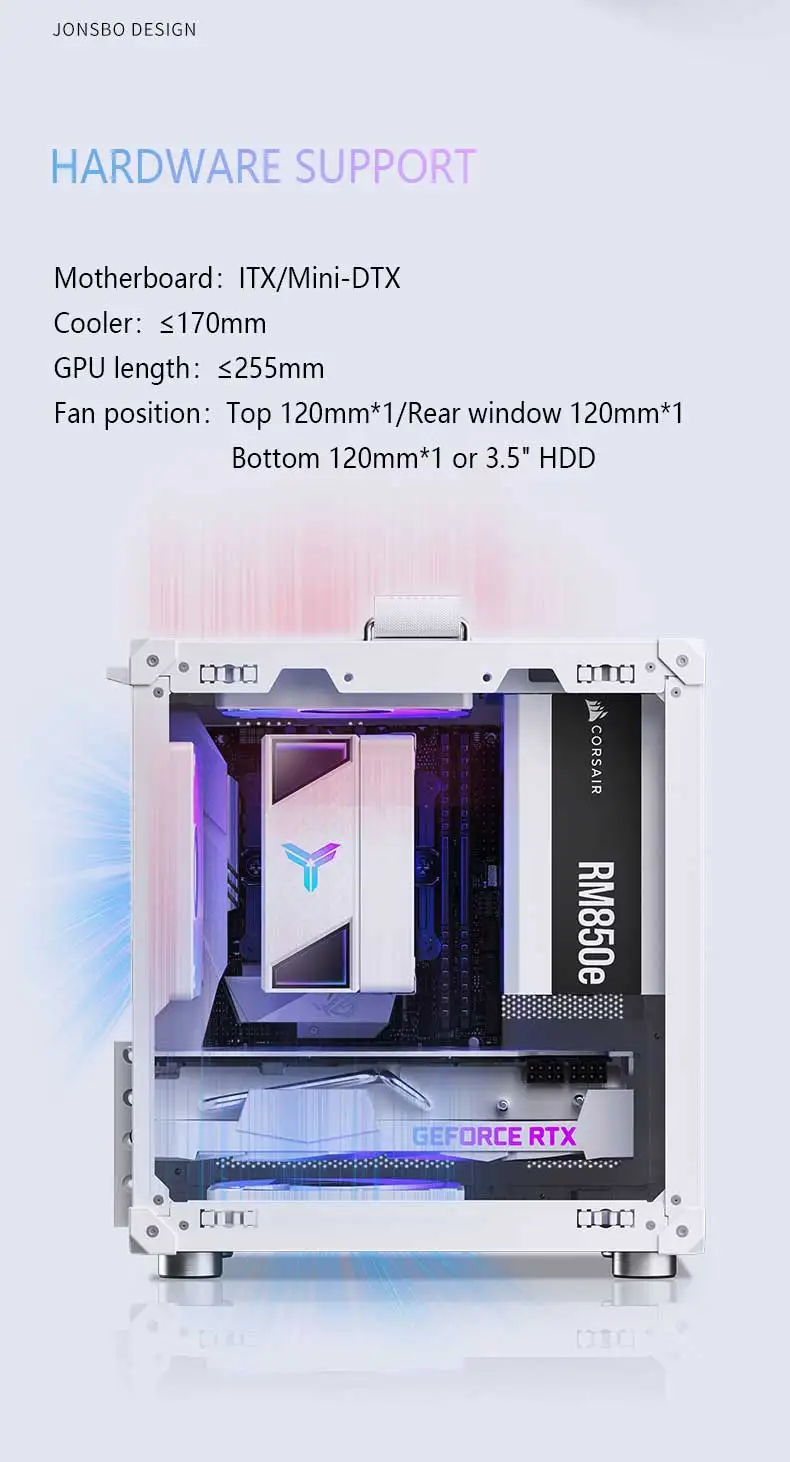JONSBO-minicaja de malla portátil para escritorio, Enfriador de torre, compatible con placa base ATX PSU ITX/C6-ITX, con asa, MINI-DTX, de menos de 170mm