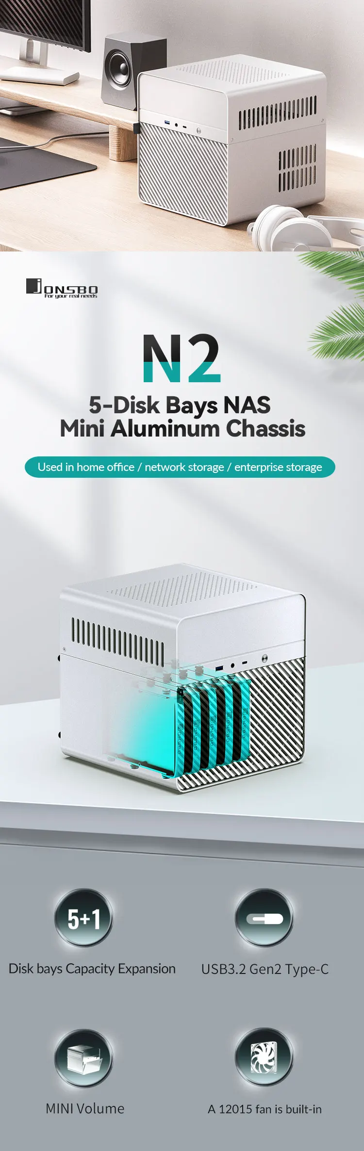 Comprar JONSBO N2 Mini NAS Case ITX 5 + 1 disco Min iAluminum con placa de acero CaseSupport 65mm CPU Cooler cubierta superior integrada extraíble
