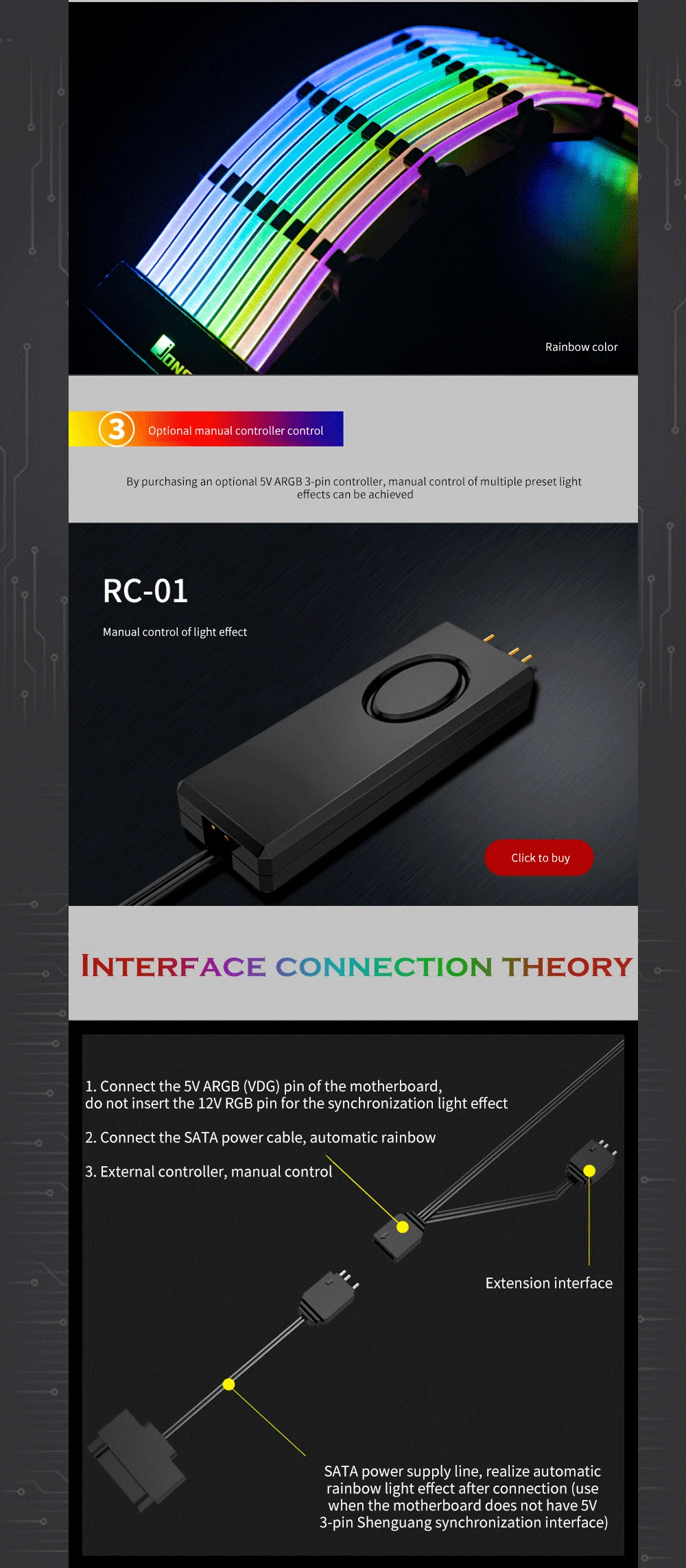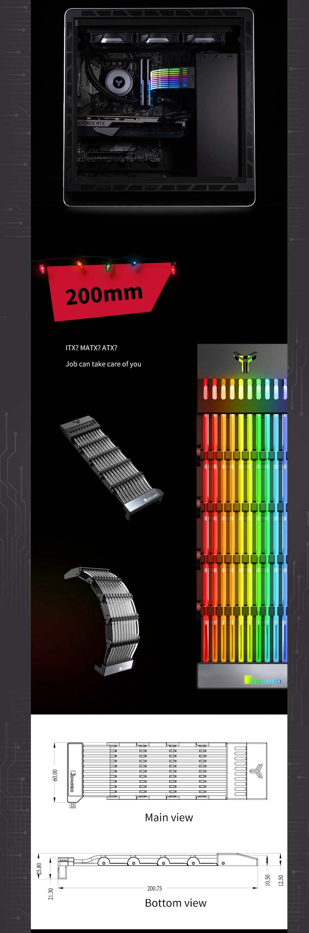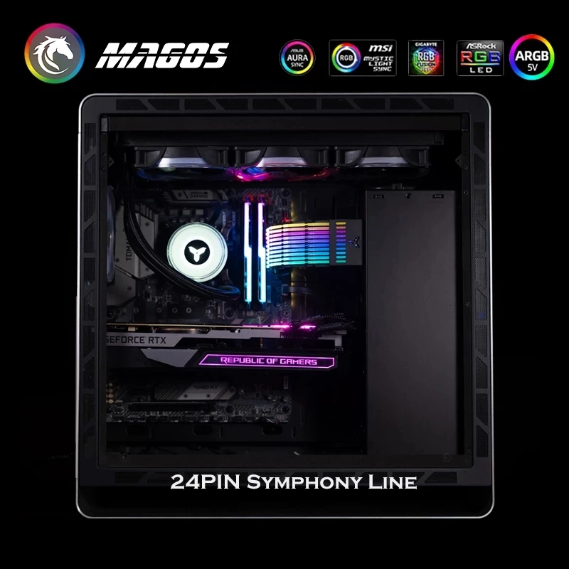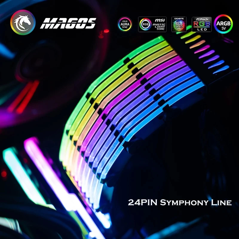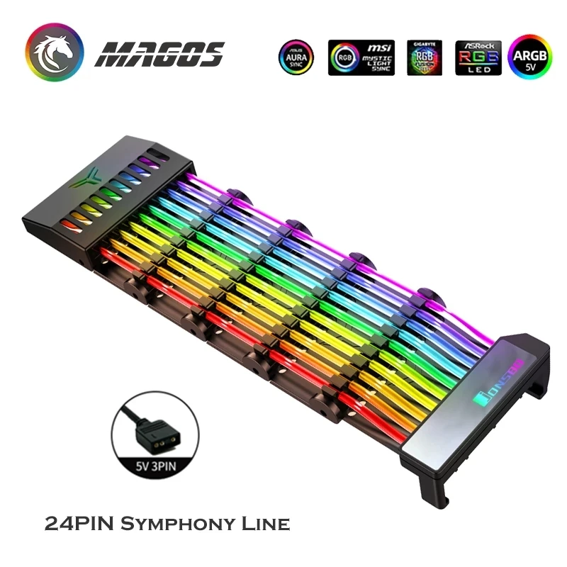 Comprar JONSBO-placa base con Cable de extensión RGB, carcasa DY-1 PC, PSU, ATX, 24 Pines, ARGB luminoso arcoíris, neón, colorido