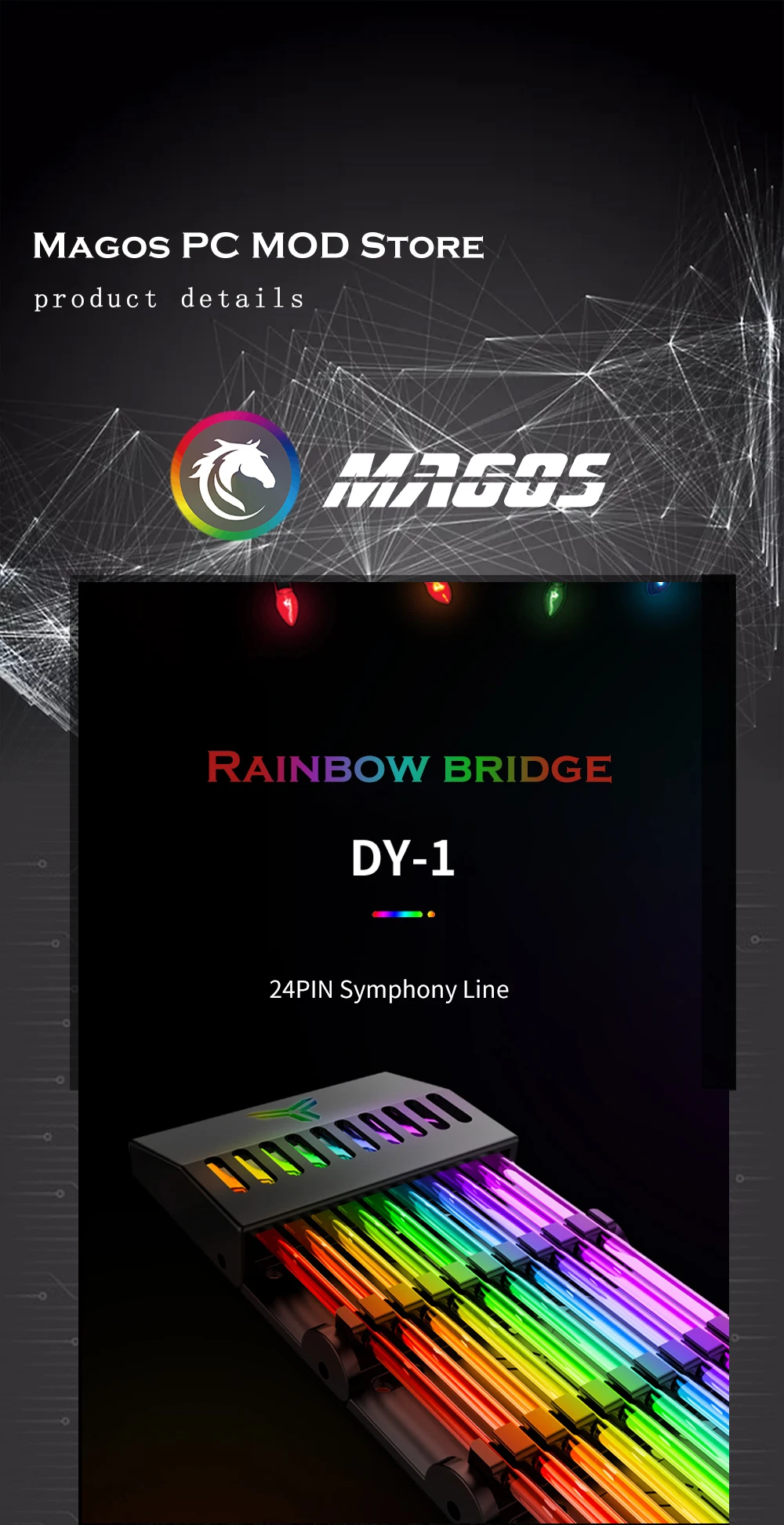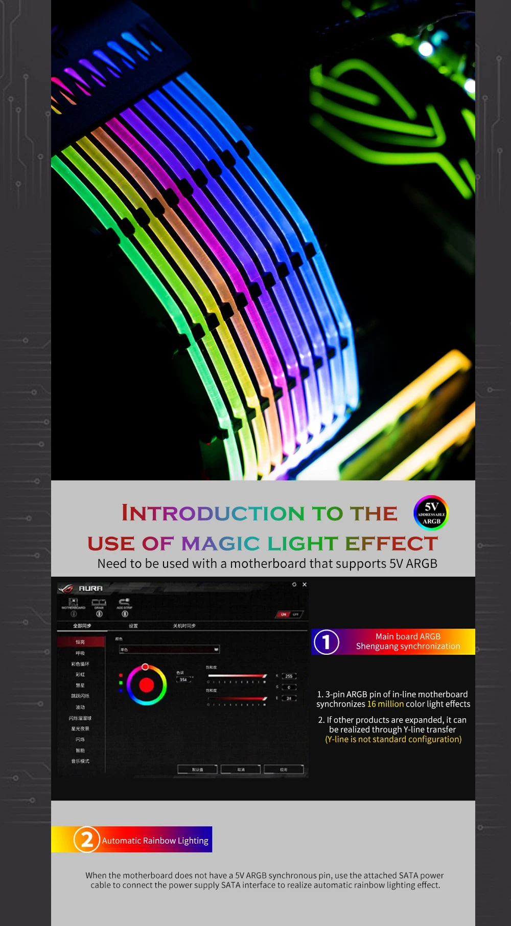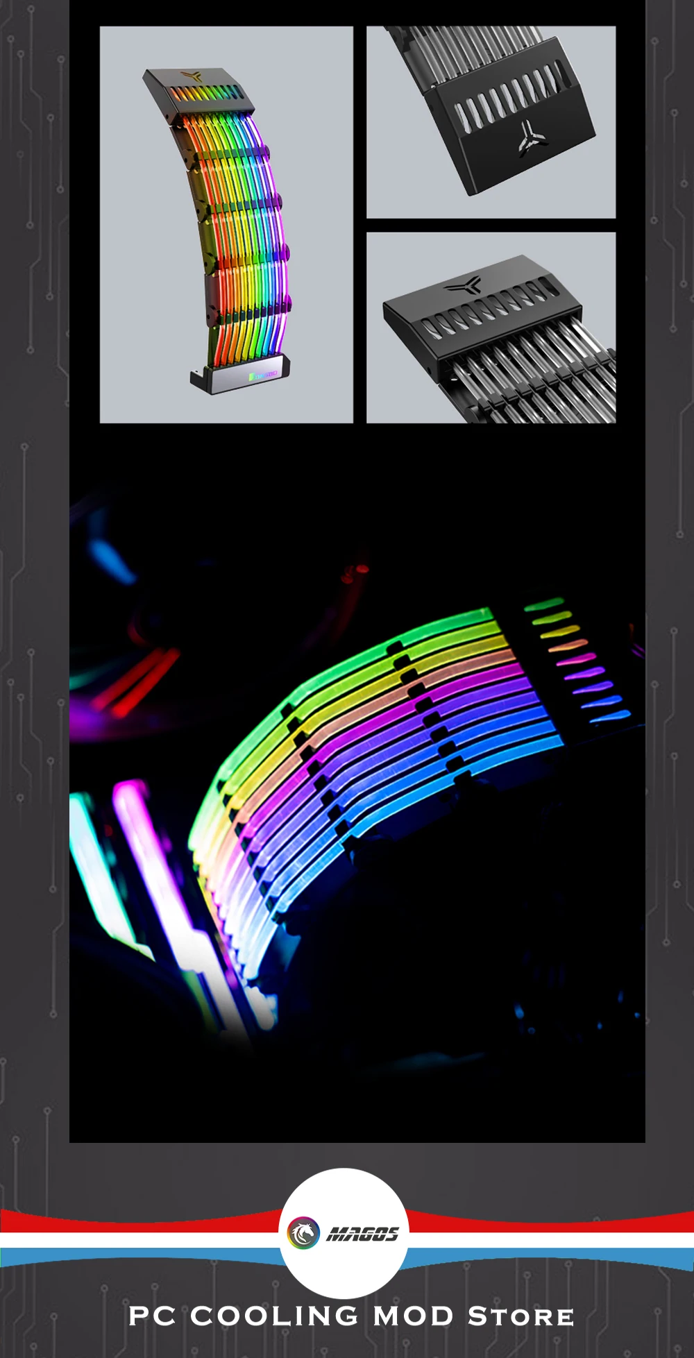 Comprar JONSBO-placa base con Cable de extensión RGB, carcasa DY-1 PC, PSU, ATX, 24 Pines, ARGB luminoso arcoíris, neón, colorido