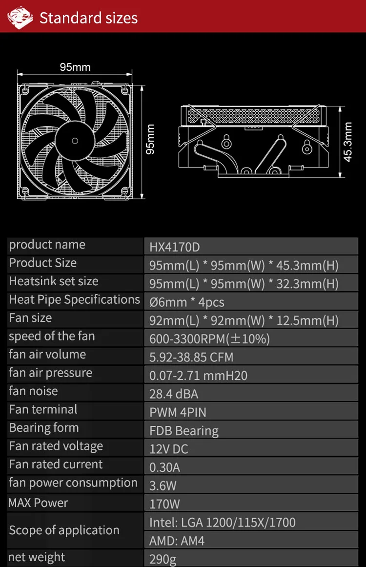 Tamaño del juego del disipador térmico: 95*95*32,3mm