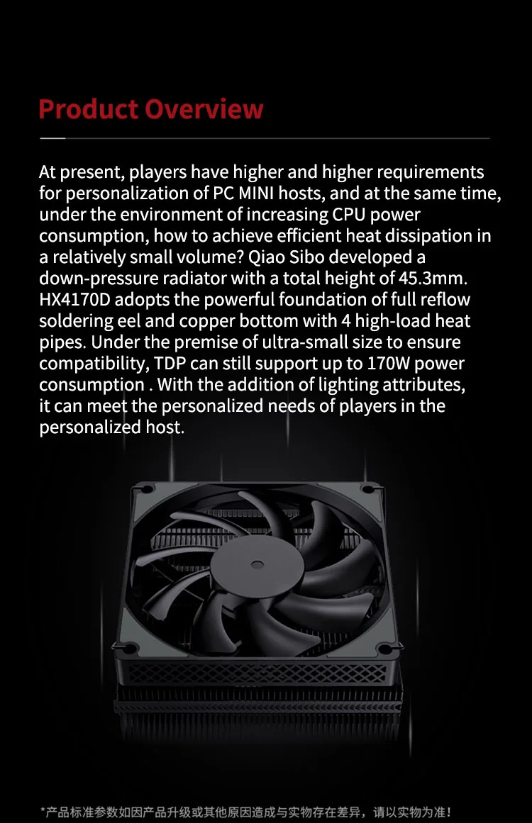 JONSBO HX4170D radiador de baja presión ventilador de Cpu 12th Generation 1700 Control de temperatura de ordenador ITX para AM4 LGA 1200/115x/1700