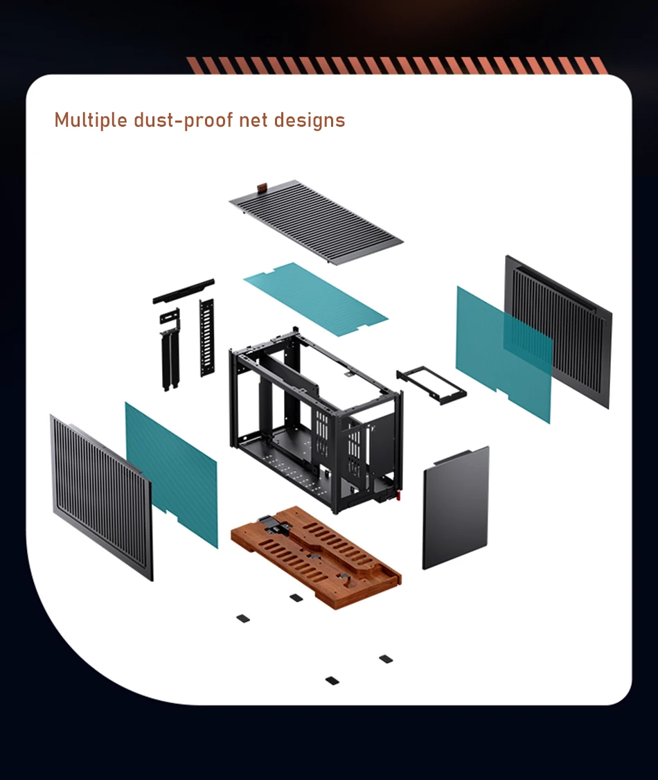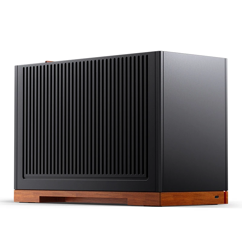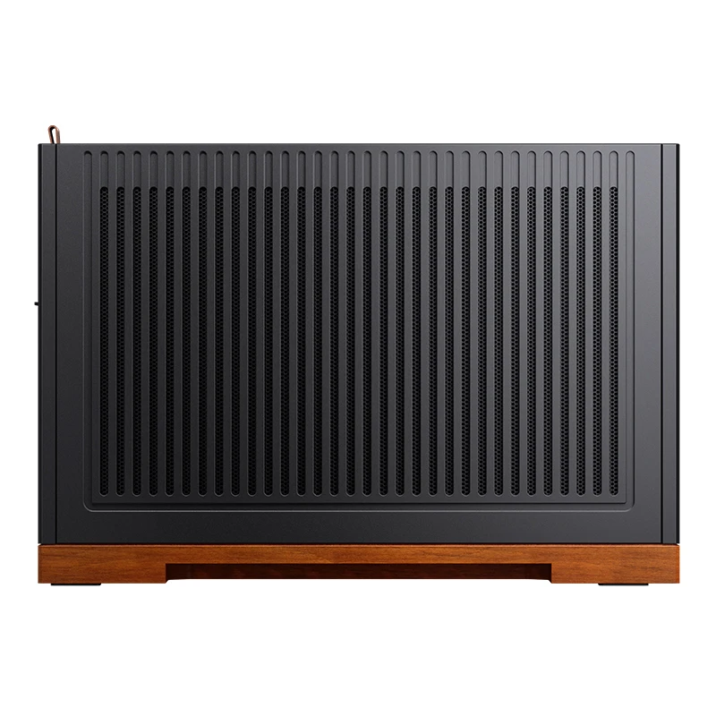 T9 es la segunda estructura del compartimento A4 basada en el chasis de escritorio A4 MINI anterior y adopta un nuevo lenguaje de diseño para el chasis ITX de escritorio de JONSBO. Los componentes externos generales del chasis están hechos de paneles de aluminio de 4 mm, complementados con un diseño de malla MALLA multifacética, lo que mejora en gran medida el rendimiento general de disipación de calor de la máquina. Al mismo tiempo, las líneas son simples y ordenadas, resaltando el estilo del diseño empresarial. La base del chasis está hecha de material de nogal de 20 mm y el diseño integrado de la base de la almohadilla para los pies hace que el producto sea más elegante. La placa base proporciona 3 posiciones de instalación para adaptarse a diferentes hardware. Aproximadamente 11 litros de tamaño, lo que permite a más usuarios experimentar la practicidad y la diversión de un chasis pequeño.