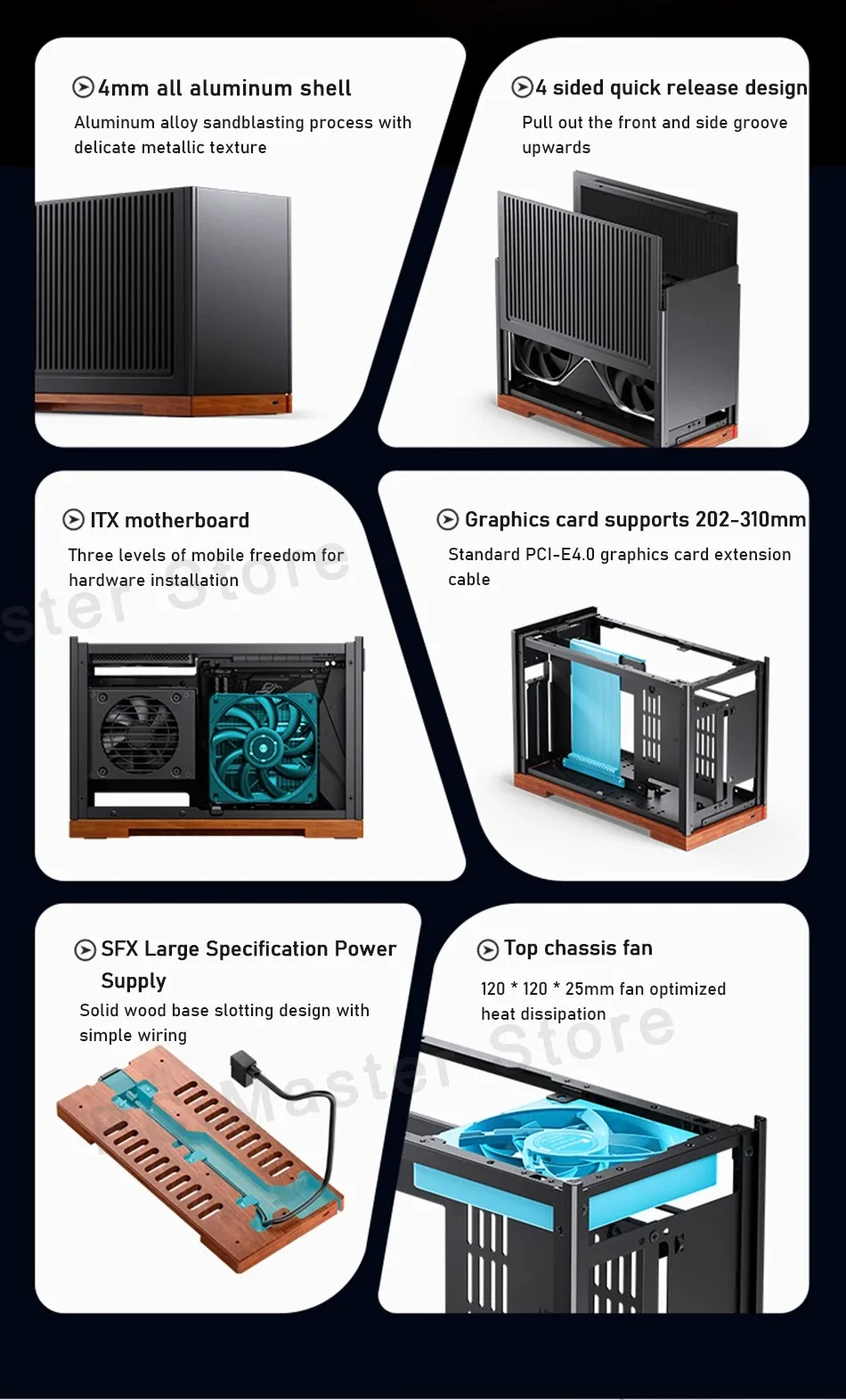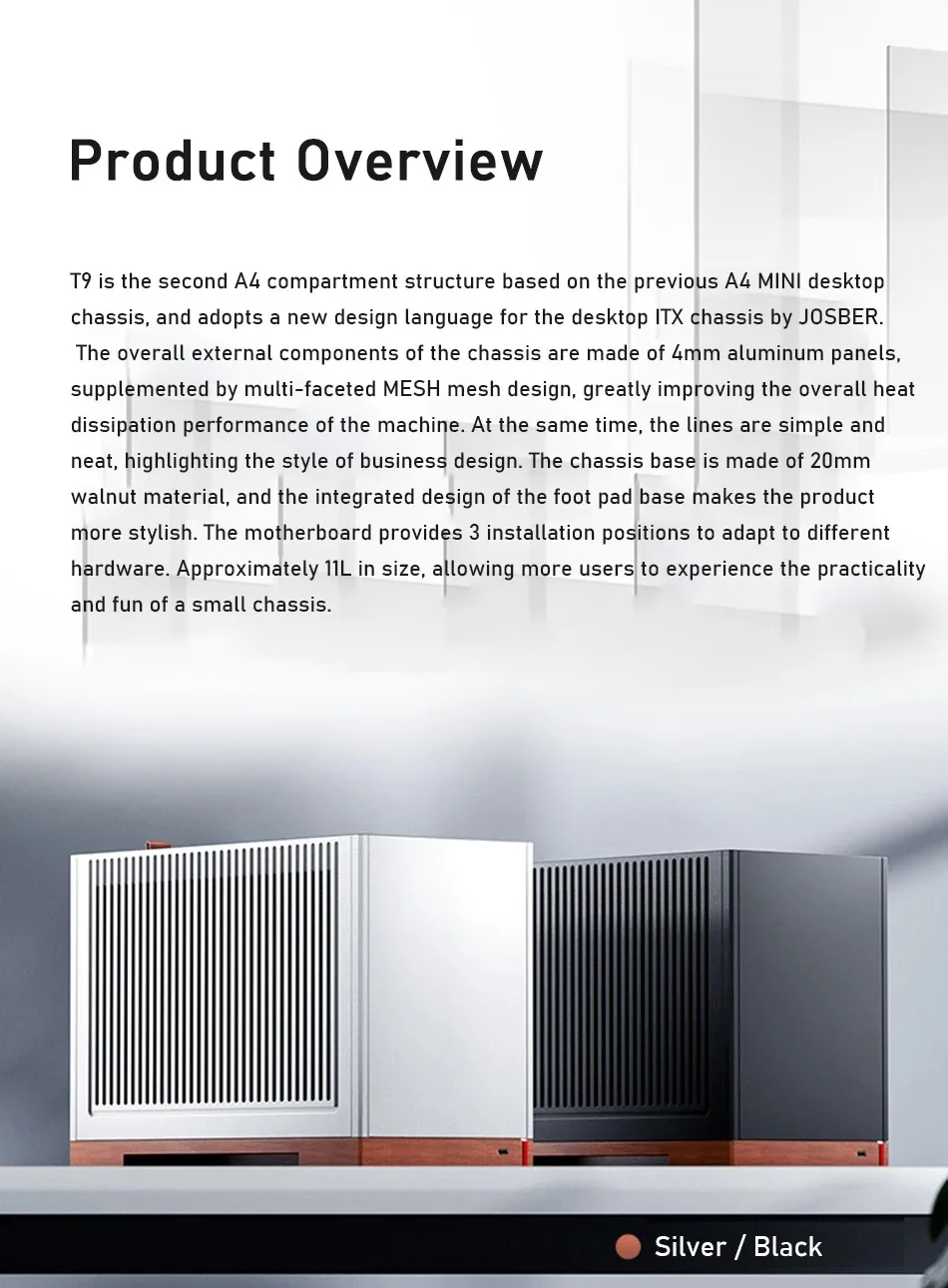 JONSBO T9 ITX Aluminum Computer Case Black Walnut Solid Wood Lightweight A4 Left And Right Divided Compartment Structure