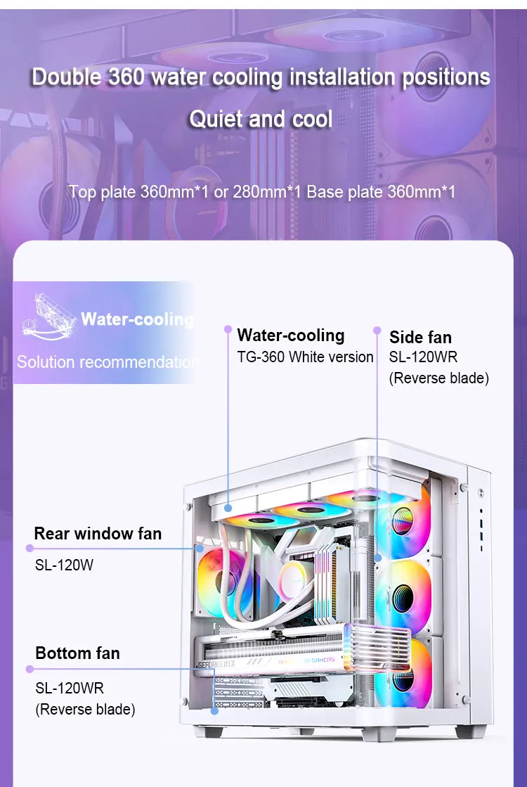 Esta vez envolví todo con un Jones Bo Cooler, pero no es una broma. Esta es la primera vez que lo configuro en blanco, pero el RGB no es una broma. Todos están enfriando el estuche del tanque de peces. No podría hacer nada. Solo mirando el cuerpo principal.
