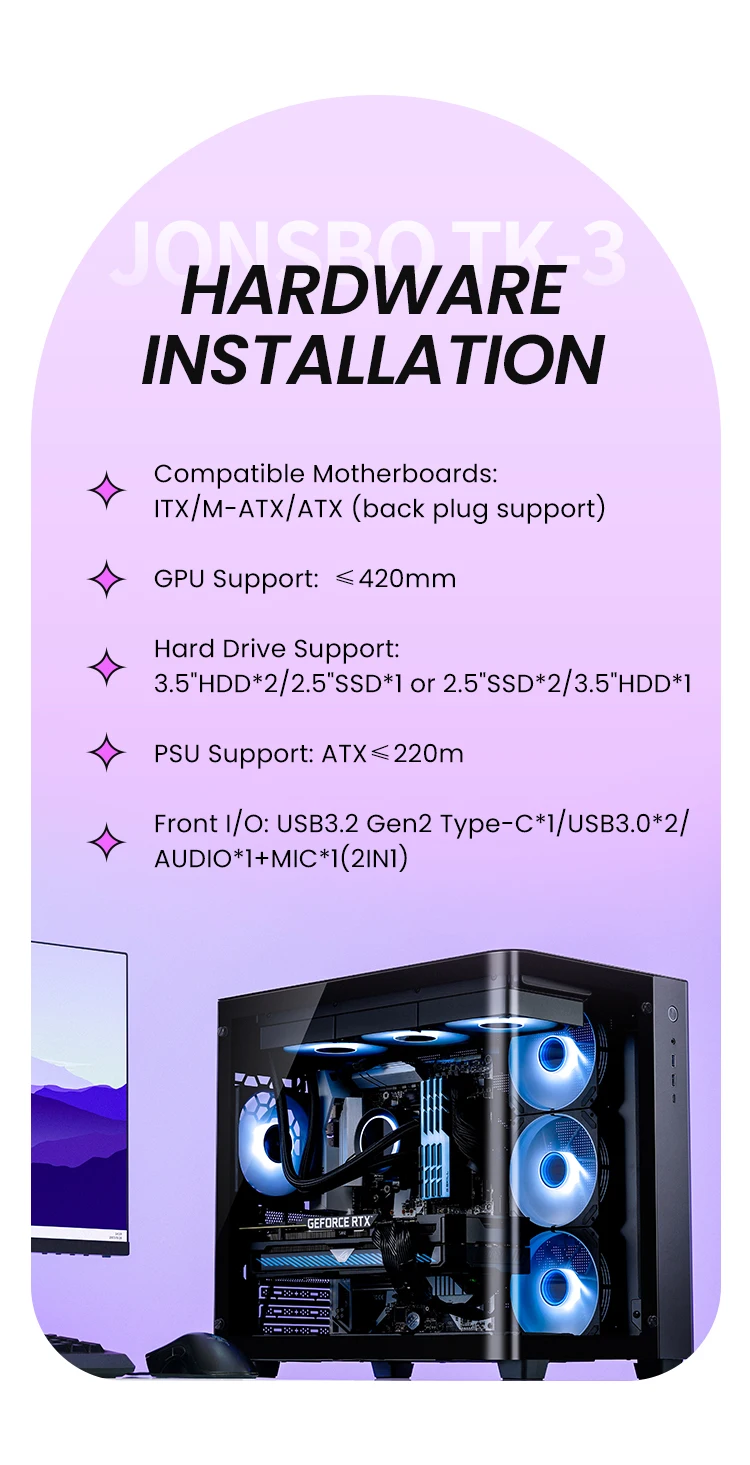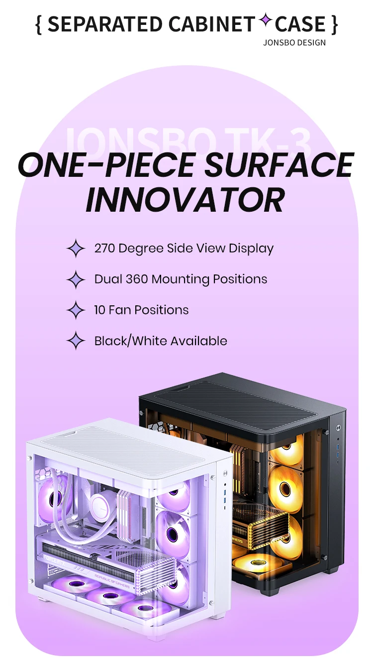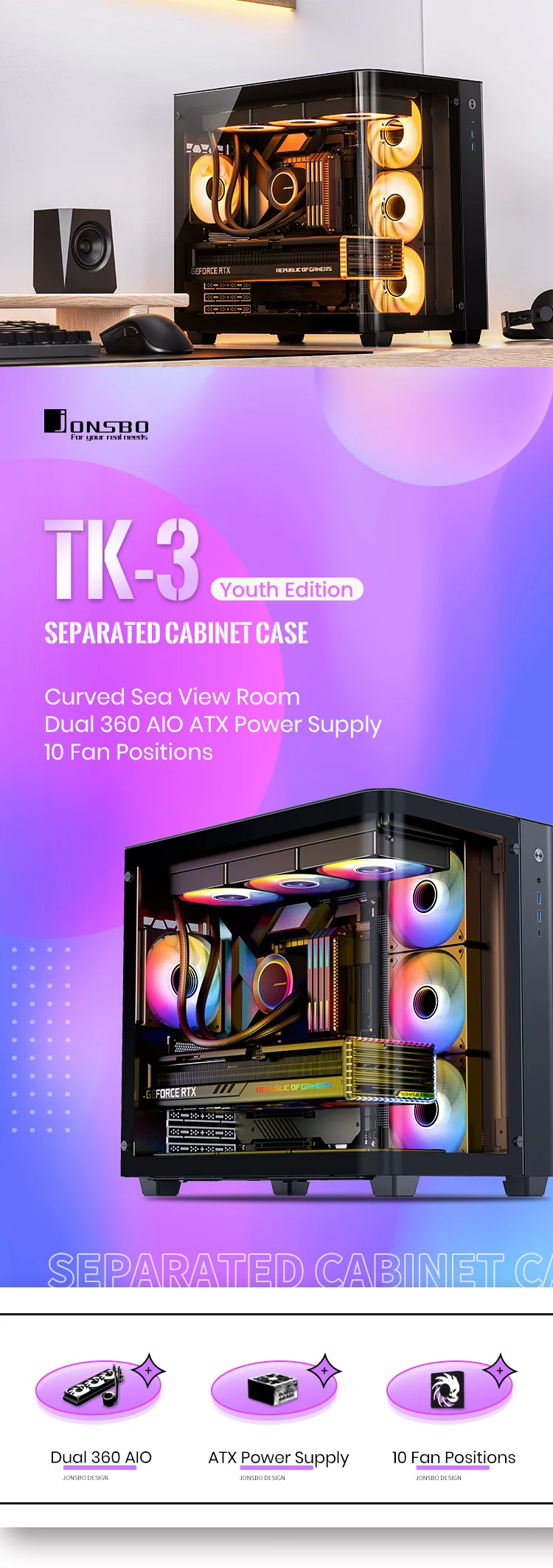 Comprar JONSBO TK-3 Caja ATX de vidrio curvo de una sola pieza Caja de gabinete separada Soporte BTF MB/Dual 360 AIO/ATX PSU/Serie 40 GPU Sin columna