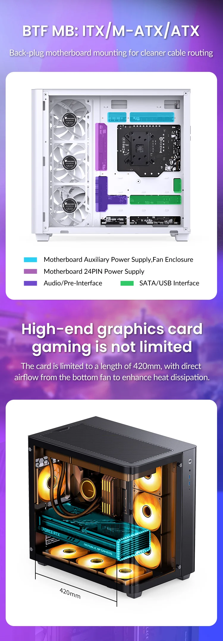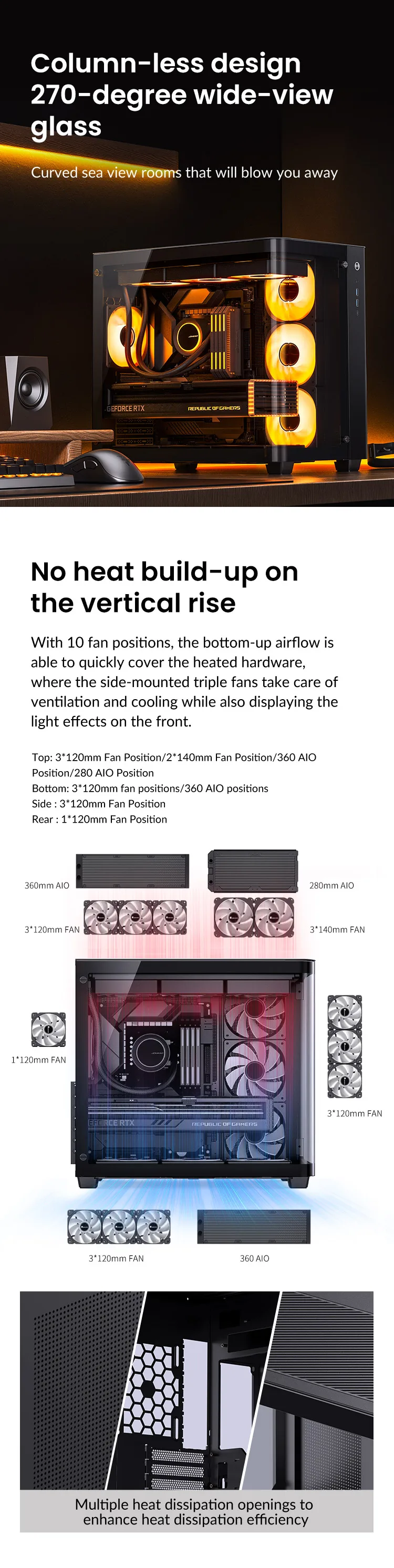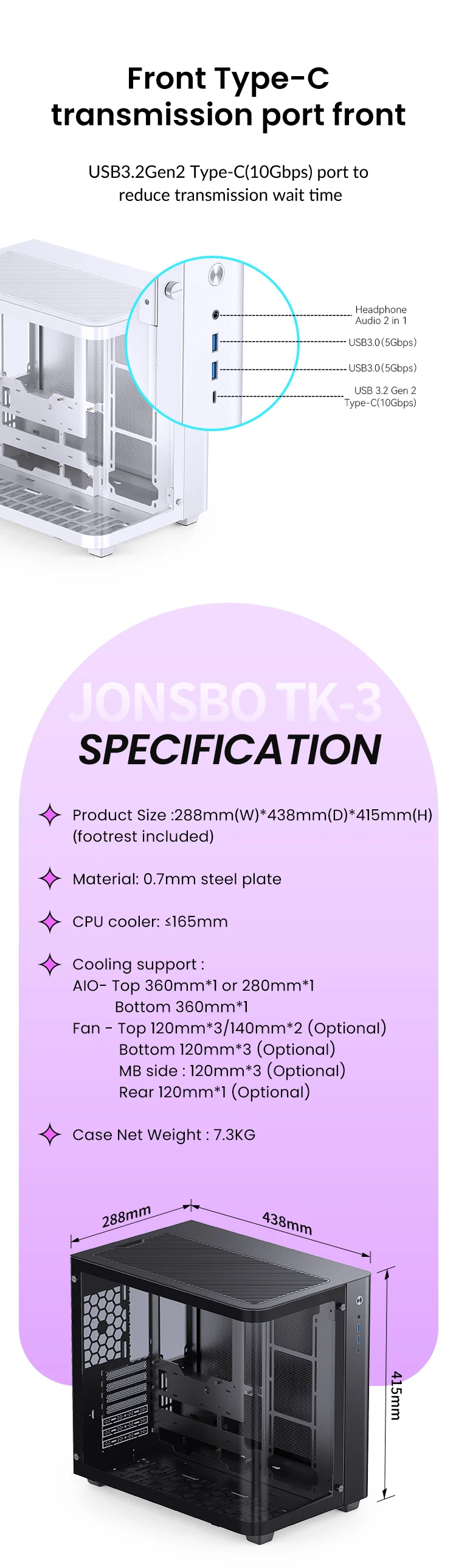 Comprar JONSBO TK-3 Caja ATX de vidrio curvo de una sola pieza Caja de gabinete separada Soporte BTF MB/Dual 360 AIO/ATX PSU/Serie 40 GPU Sin columna