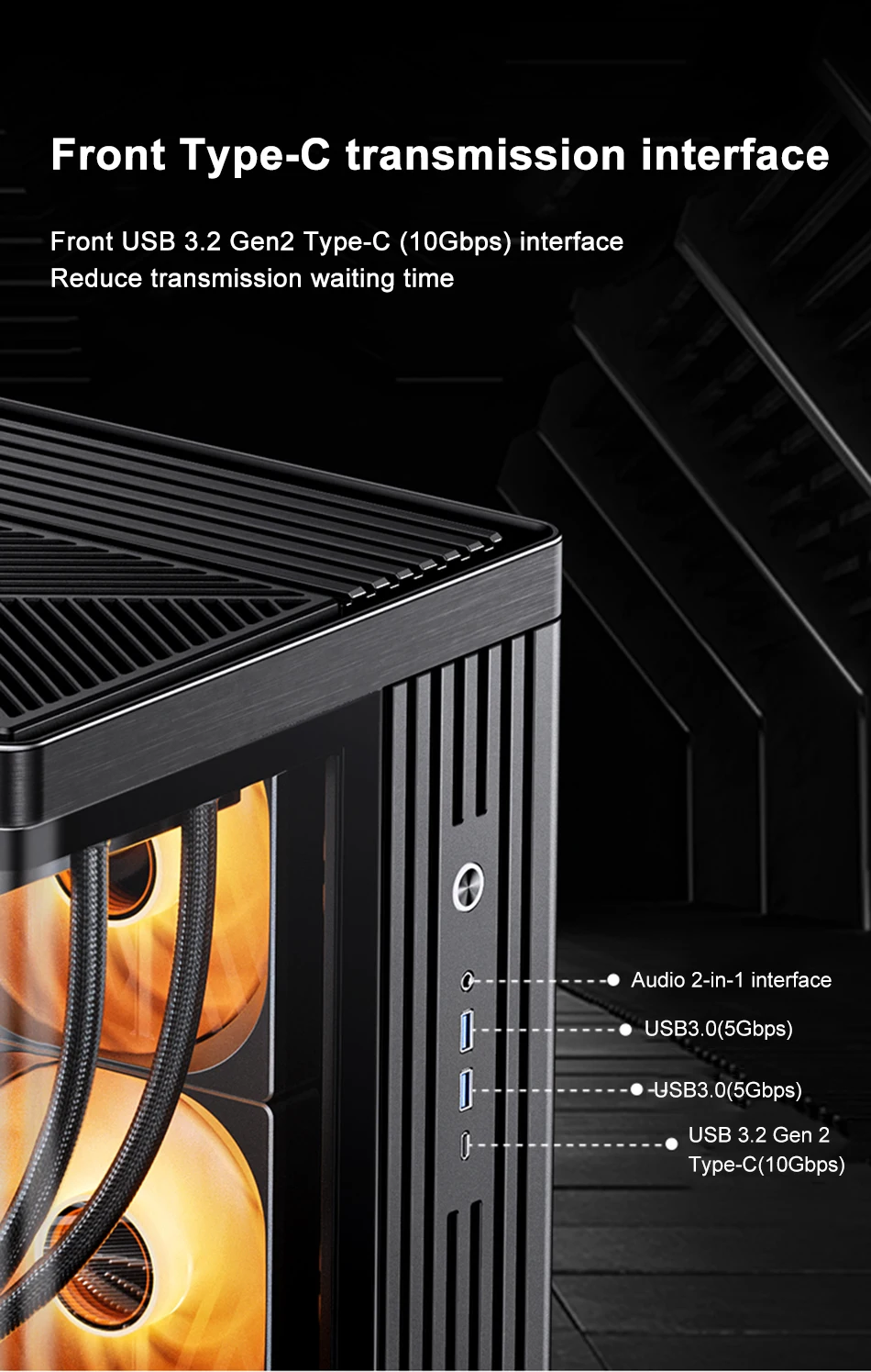 Interfaz frontal: USB 3.2 Gen2 Tipo-C * 1/USB 3.0 * 1/AUDIO * 1+MIC * 1 (2 en 1)