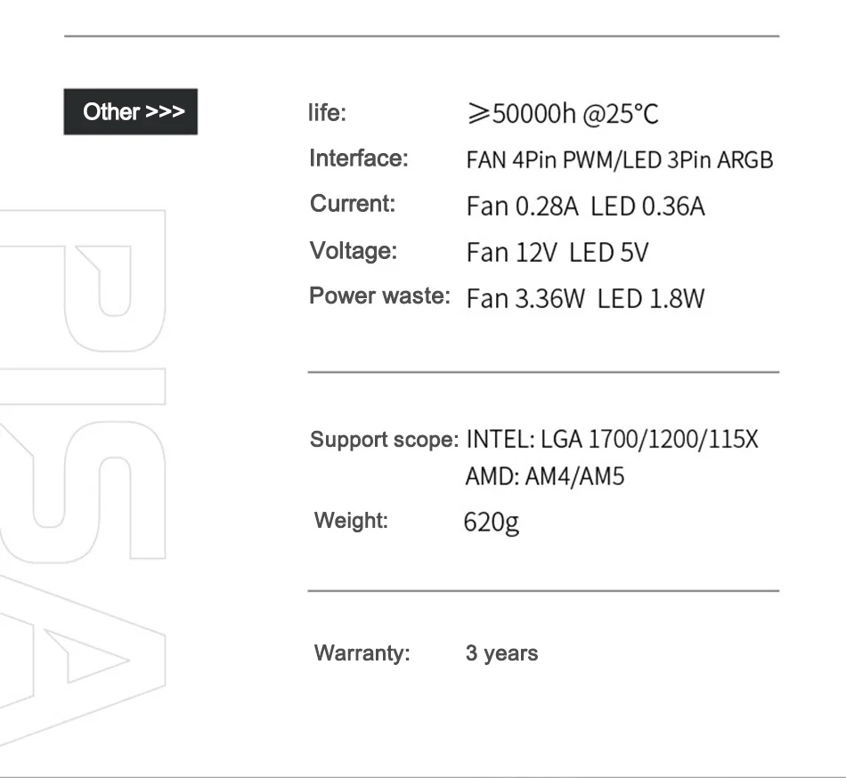 Comprar JONSBO-Torre de tubo de calor para CPU, ventilador silencioso ARGB de 3 pines, radiador refrigerado por aire para LGA1700 115X 1200 AM4 AM5, color negro/blanco, modelo PISA A4 A5