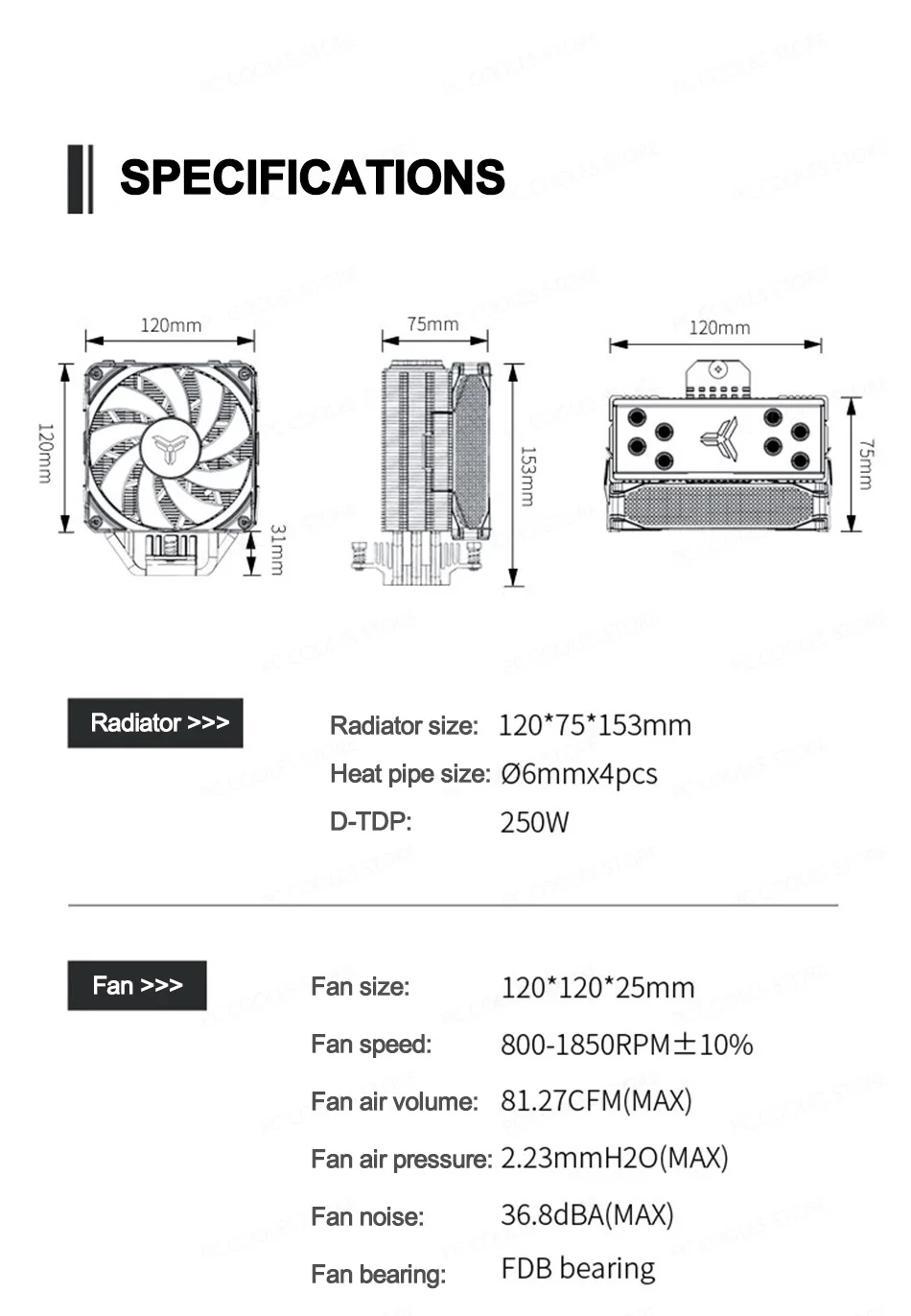 Tamaño del radiador: 120mm (L) * 75mm (W) * 153mm (H)