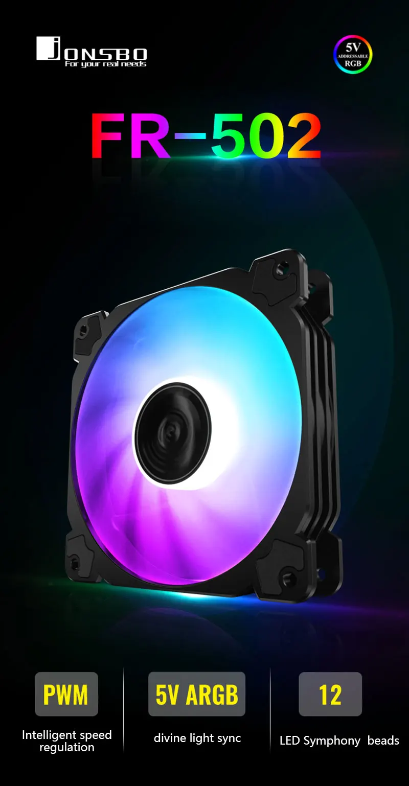 Comprar JONSBO-ventilador de chasis FR502 ARGB Symphony PWM Versión 5V, placa base de tres Pines de 12cm, rodamiento hidráulico de sincronización de luz ARGBdivine