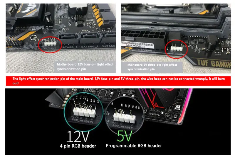 Conector: efecto de luz 12V de cuatro pines + fuente de alimentación pequeña de 3 pines