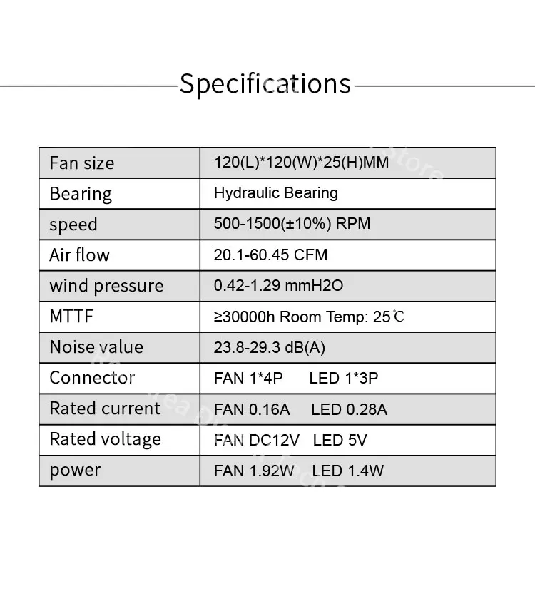 *Fan Size:120(L)*120(W)*25(H)MM