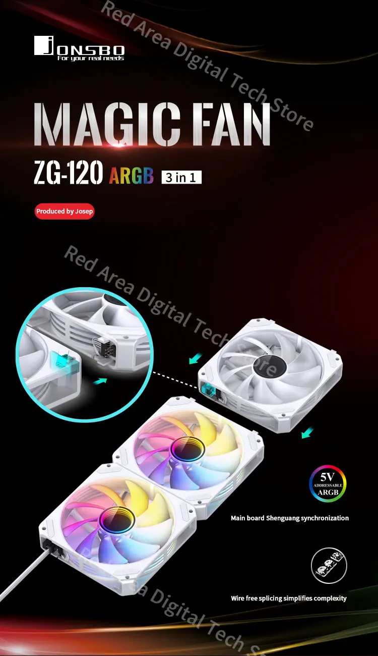 Comprar JONSBO-ventilador de refrigeración ZG-120B 3 en 1 para CPU, carcasa de ordenador y PC, sin conexión de cable, radiador, 4 pines, ARGB, RGB