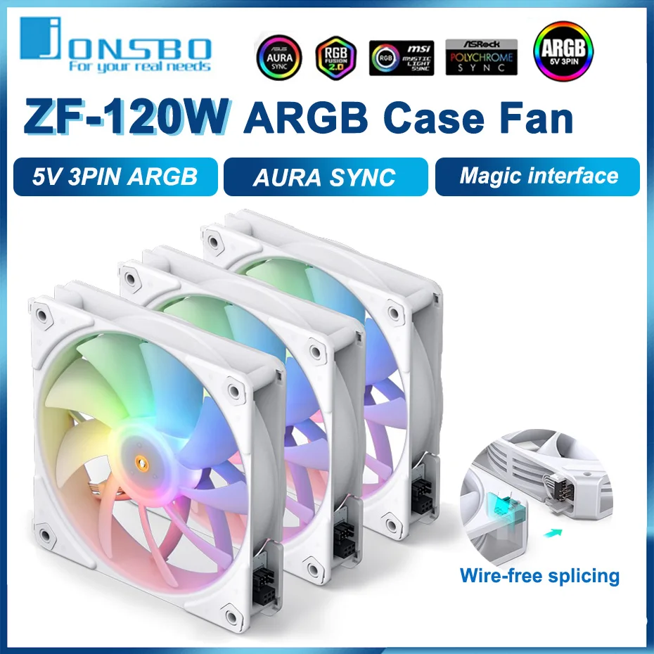 Comprar JONSBO-ventilador ZF-120W 3 en 1 de 120mm, Enfriador de CPU, 5V, 3 pines, ARGB, empalme sin cables, PWM, ventiladores de refrigeración silenciosos