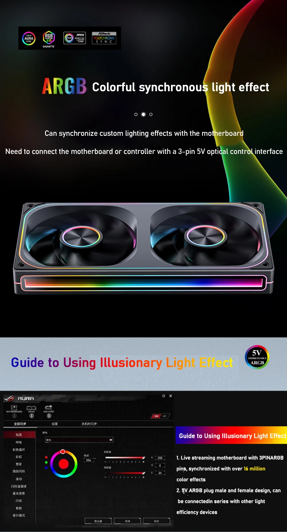 Comprar Jonsbo ZA-120/240/360 ventilador con cubierta 360 espejo de mil capas de múltiples caras 5V 3PIN ARGB 12cm ventilador de refrigeración PWM ZA-120BR ventiladores enfriadores de aire