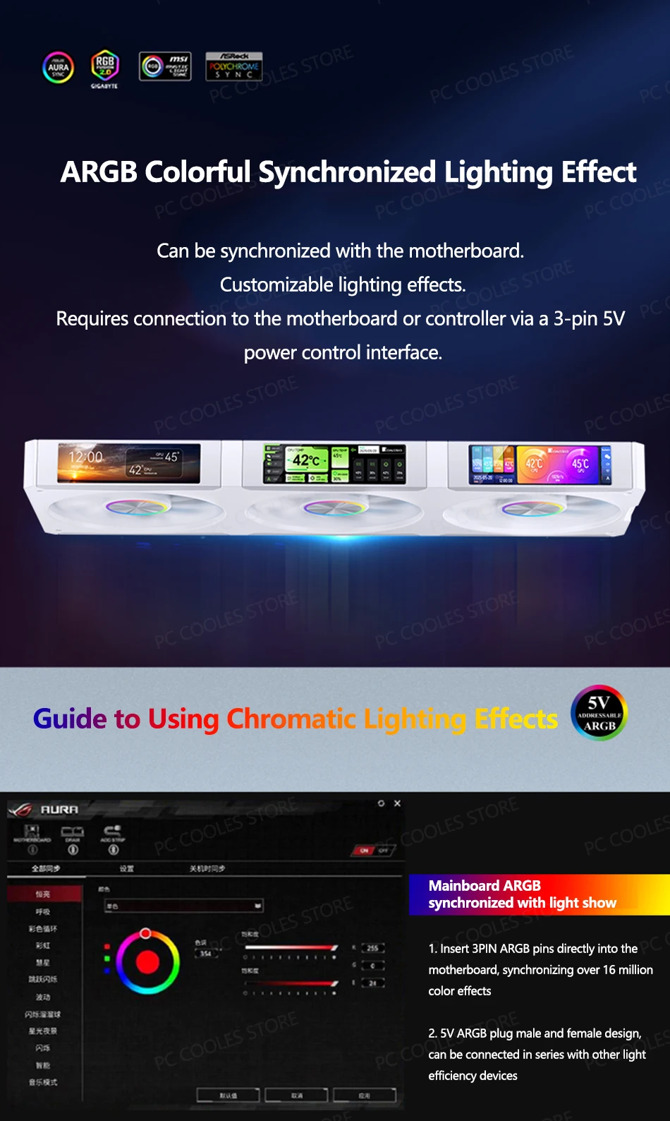Interfaz: PWM 4PIN/ARGB 3PIN/LCD USB