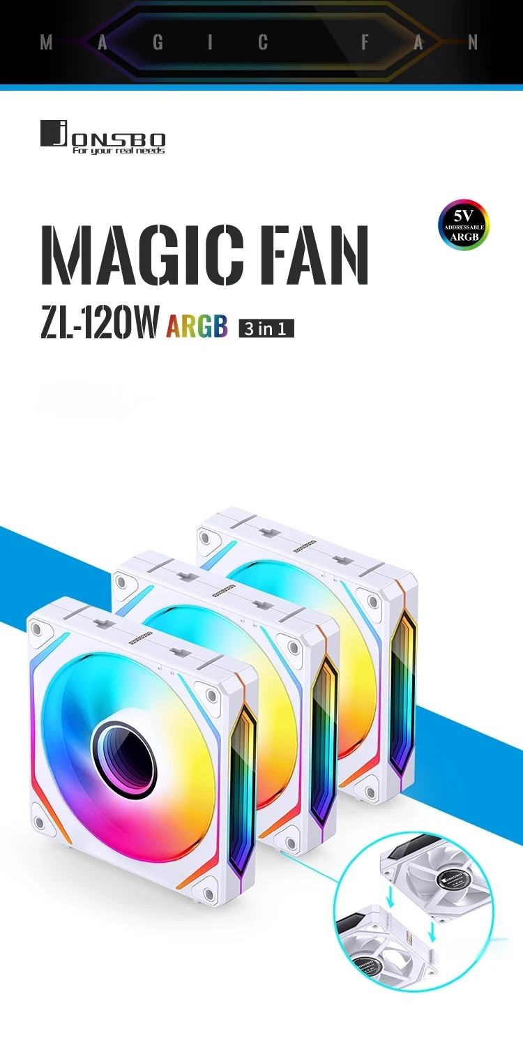 JONSBO ZL-120 3 en 1 ARGB PC Case Ventilador 120mm 4PIN PWM Control de temperatura 3PIN ARGB CPU Ventilador de refrigeración