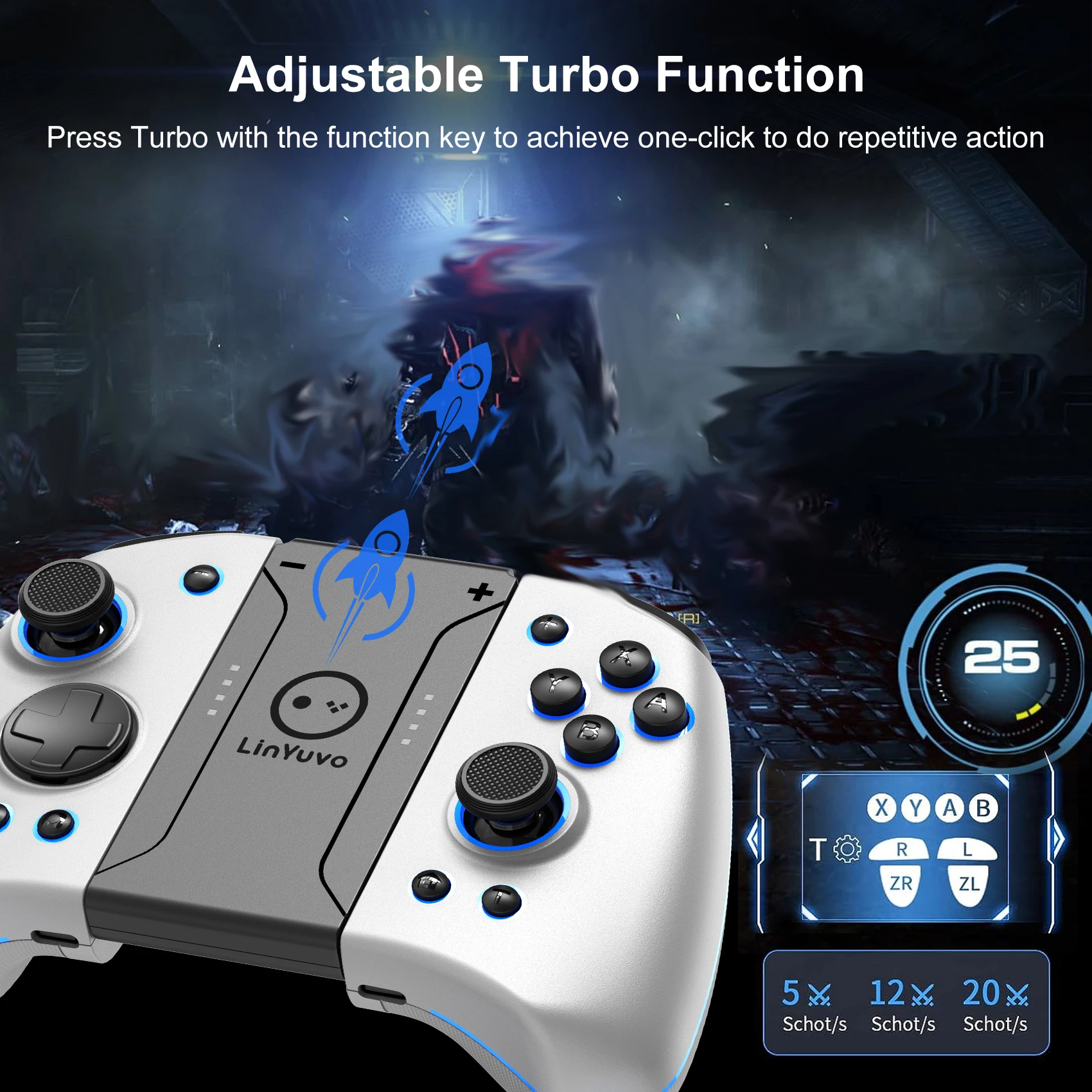 Joypad inalámbrico Meteor Light con botones mecánicos para interruptor/interruptor OLED, con giroscopio programable de 6 ejes, Turbo y vibración