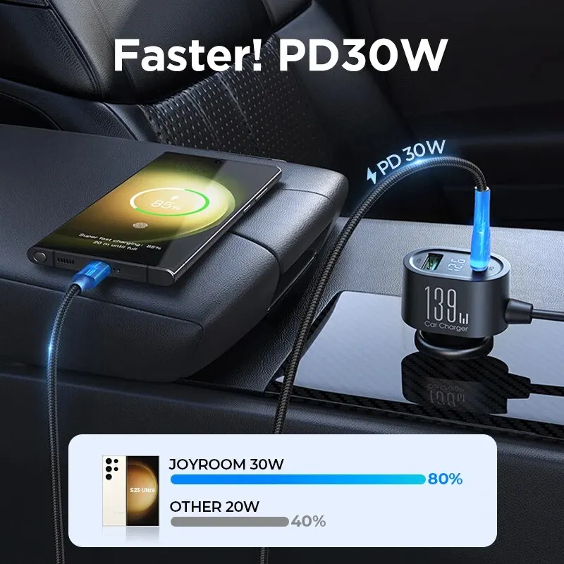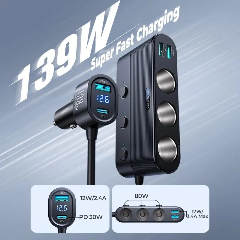 Comprar Joyroom 139W 7 en 1 adaptador de cargador de coche rápido PD QC3.0 enchufe encendedor de cigarrillos divisor carga interruptores independientes salida CC