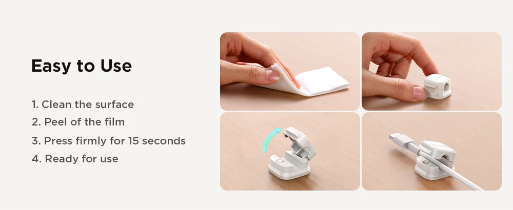 4. 【Hace que sus cables estén organizados】 El organizador de cables de Joyroom puede sujetar los cables en su lugar firmemente y mantenerlos alejados del suelo.Más importante aún, el juego de 6 paquetes le permite mantener los cables hacia los rastros limpios como desee, como colocarlos en el escritorio de la oficina, la mesa, el rincón de la mesa, la pared o el tablero del automóvil.