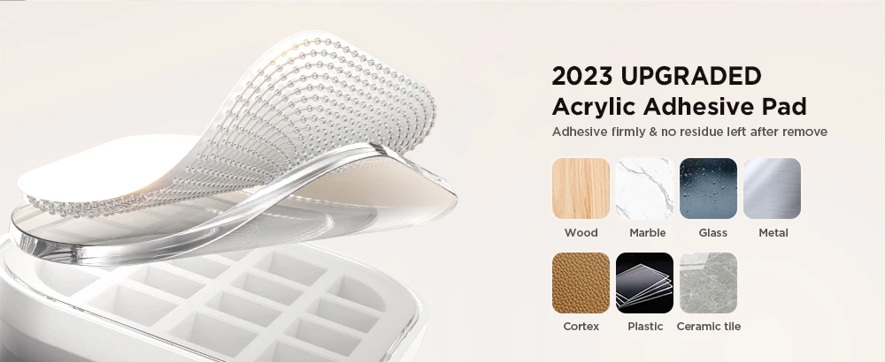 3. 【Adhesivo acrílico mejorado sin residuos】 La almohadilla adhesiva acrílica mejorada permite que el organizador de cables se adhiera firmemente a casi cualquier superficie plana y limpia, como mesas de madera, vidrio, baldosas de cerámica, etc.Mientras tanto, la almohadilla adhesiva acrílica transparente extraíble no dañará su escritorio, pared ni dejará residuos después de retirarla.También se incluye una almohadilla de repuesto en la caja, lo que permite reutilizar el soporte del cable.