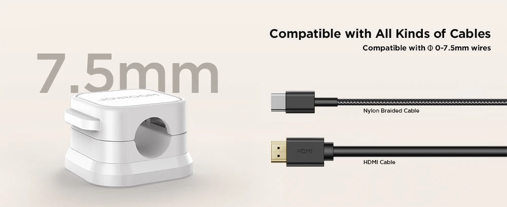 5. 【Detalles bien pensados】 El ancho máximo del soporte para cable de 0,87 pulgadas permite fijarlo firmemente en la mayoría de los espacios estrechos.El organizador de cables Joyroom no ocupa demasiada área para pegar y se puede ocultar perfectamente en cualquier rincón pequeño que te interese.[Consejos de instalación amables: limpie la superficie deseada sin polvo antes de pegarla y siga presionando durante 30 segundos para mejorar la adhesión de la almohadilla adhesiva.Recomiendo encarecidamente esperar entre 12 y 24 horas para un mejor uso].