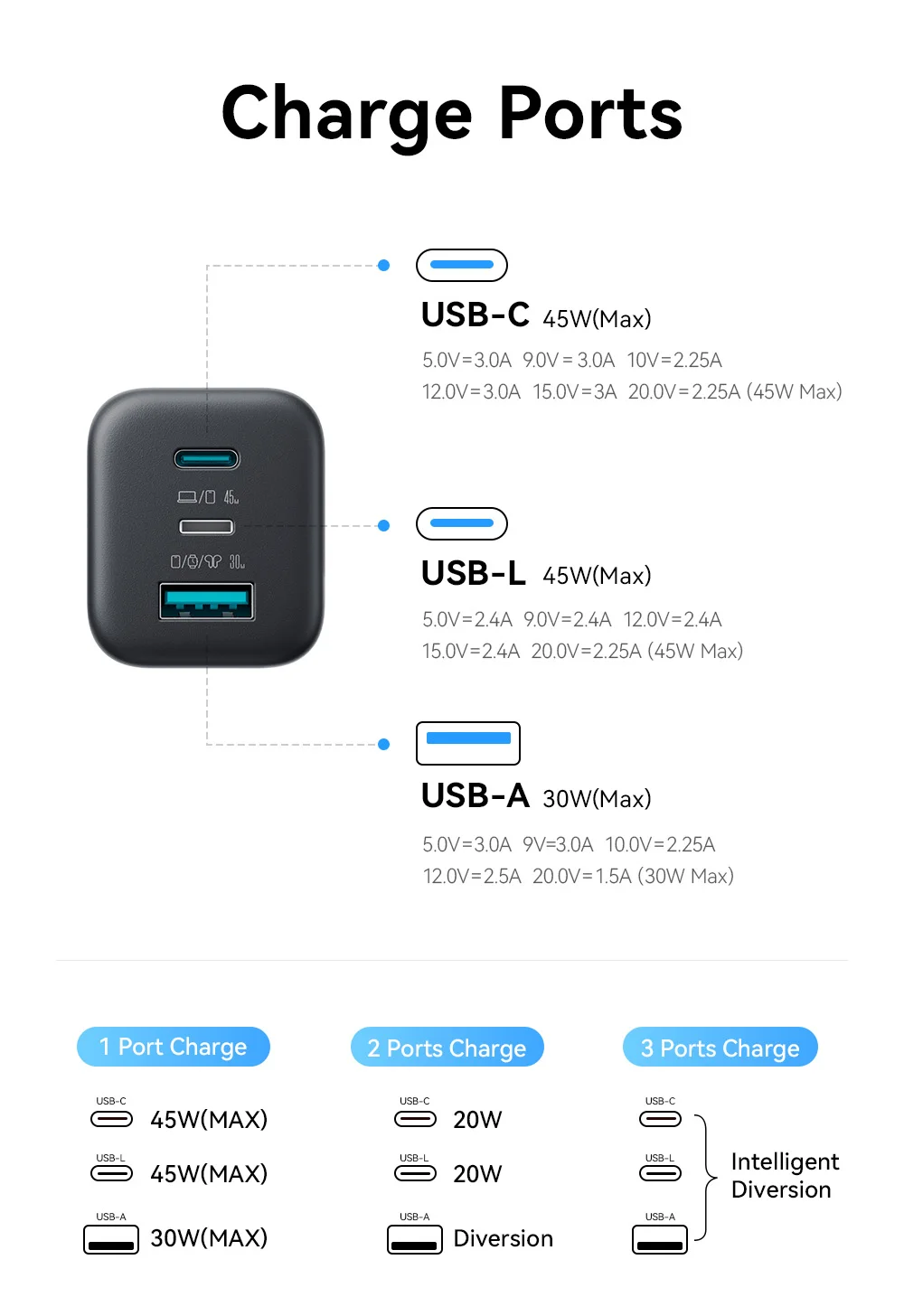 2. L-port reverse output (30W Max): multi-device users no longer need multiple chargers and multiple charging cables