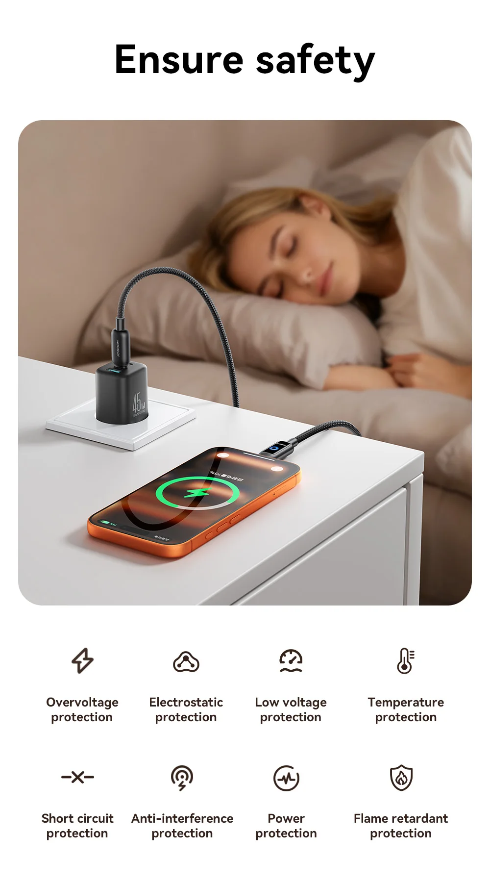 5. Nine safety protection: over-voltage, over-current, short circuit, under-voltage, anti-interference, over-power, anti-static, intelligent temperature control, flame retardant protection, use more peace of mind.