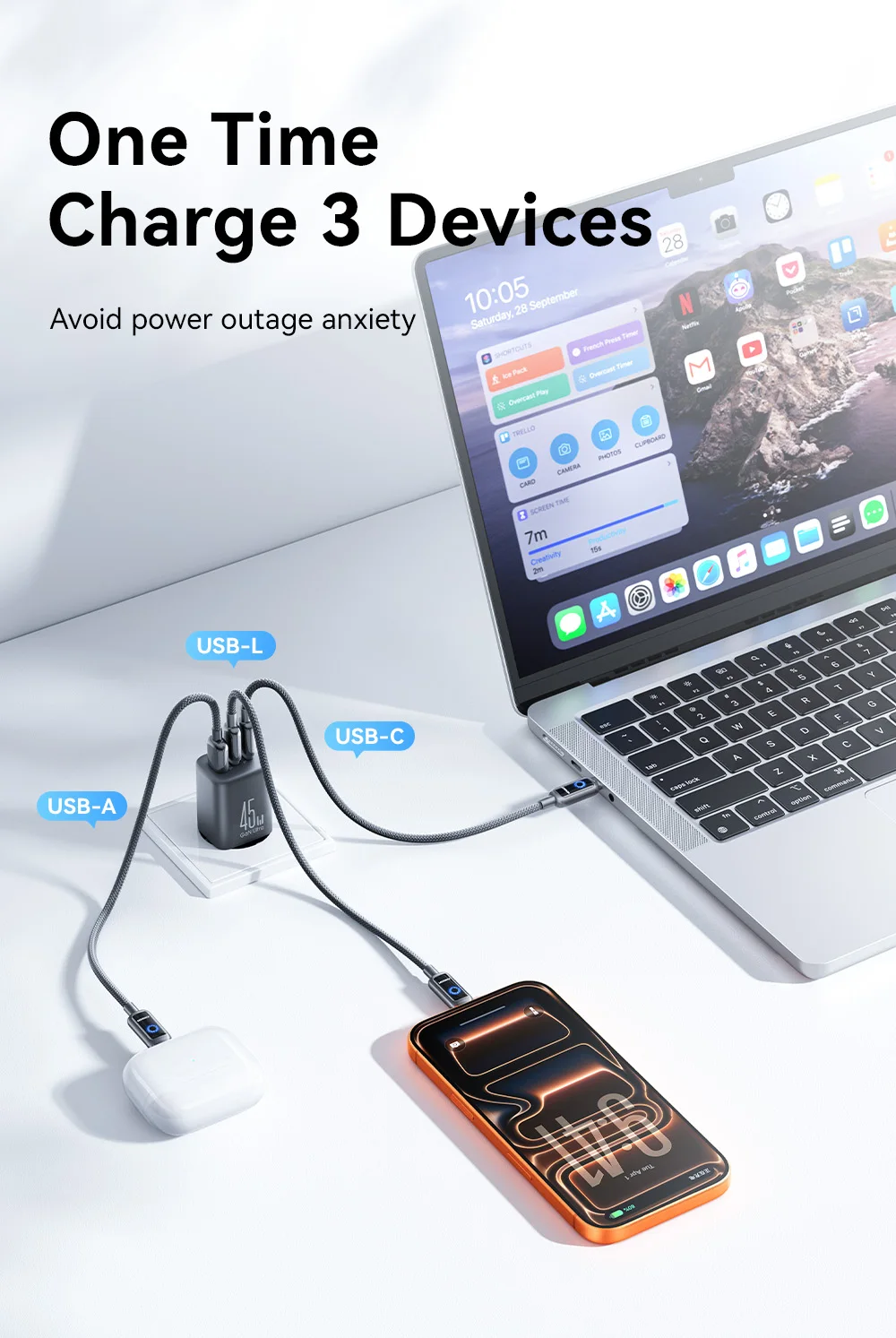 1. Powerful:30W 3-port GaN, fast charging, 60% charge in 28 minutes.