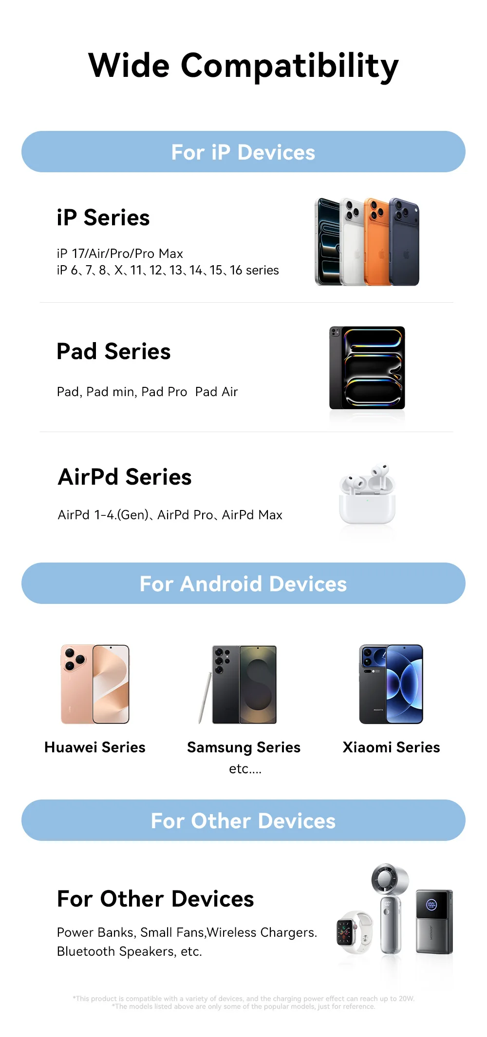 4. Compatible with a variety of fast charging protocols: compatible with the new Iphone16 cell phones, tablets, laptops and other brands of equipment.