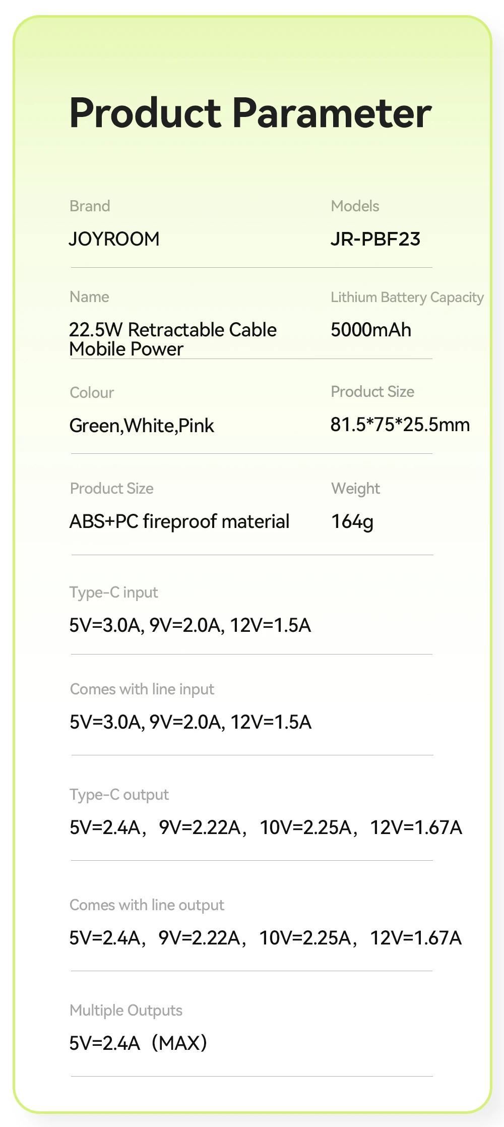 Función: con cable retráctil, cable de datos incorporado, carga rápida bidireccional, con hebilla para colgar