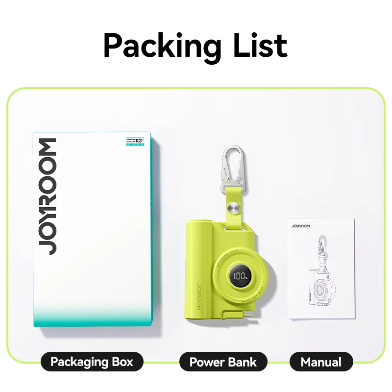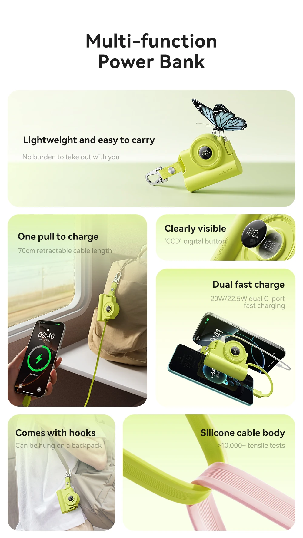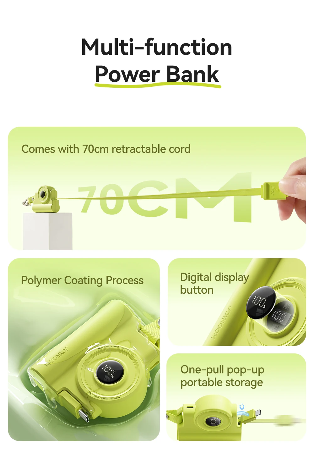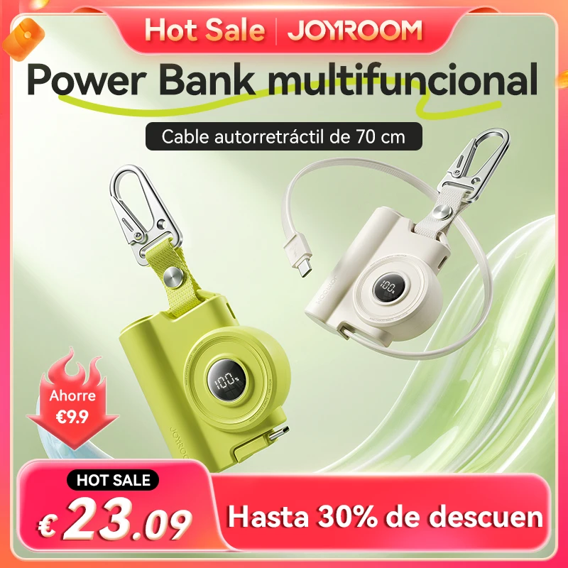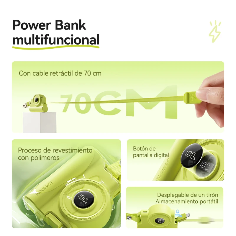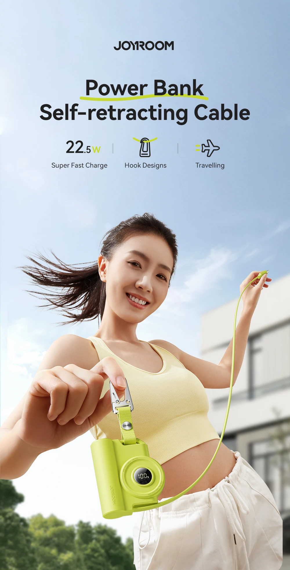 Comprar Joyroom 5000mAh Power Bank 22,5 W pantalla Digital Powerbank con Cable retráctil tipo C de 70cm para iPhone Samsung carga rápida