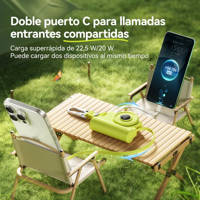 Función: con cable retráctil, cable de datos incorporado, carga rápida bidireccional, con hebilla para colgar