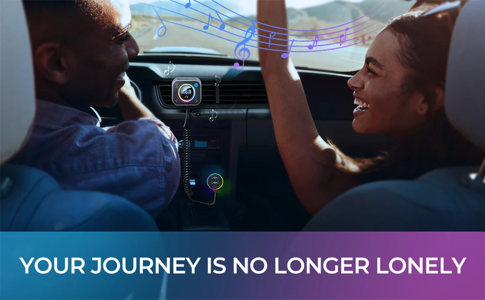 2.【Bajo de alta fidelidad Boost】 Después de optimizar el sonido, este transmisor FM transmitirá audio de alta fidelidad y bien equilibrado desde su dispositivo al sistema del automóvil. Simplemente presione el botón "B" para sumergirse en potentes graves profundos y sonido estéreo. Un rendimiento de audio con graves lo hace ideal para conducir, porque es lo suficientemente potente como para cortar el ruido del viento.
