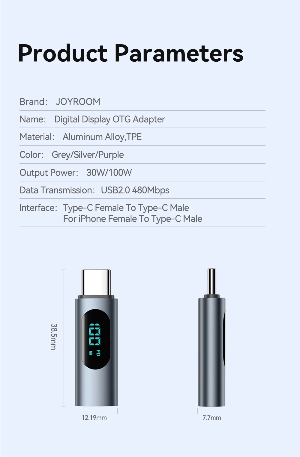 Comprar Joyroom-adaptador OTG tipo C a USB C de 100W, pantalla Digital, carga rápida, transferencia de datos para iPhone 15 pro max Macbook Pro Air Samsu