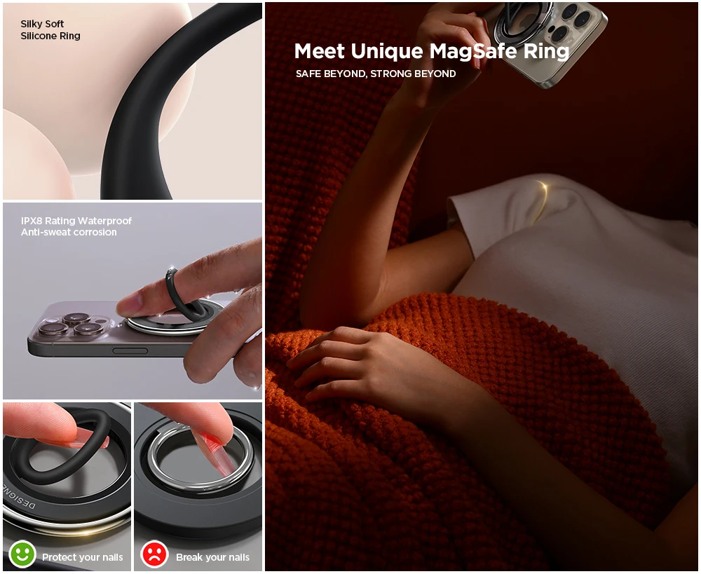 Multivista de 180 °; Anillo suave sedoso; Imanes Premium; Magsafe 1:1