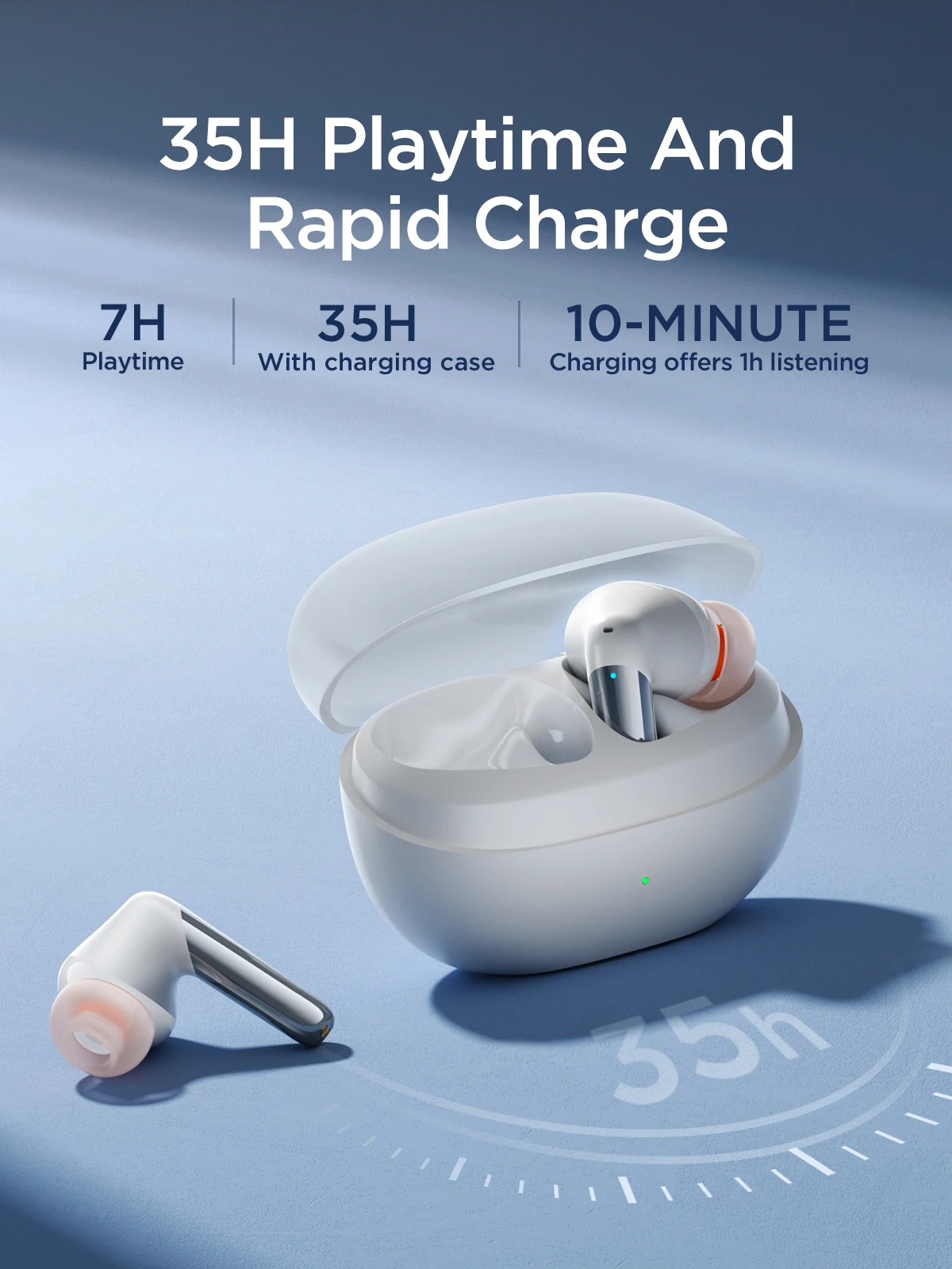 3. Tiempo de escucha total de 35h, carga ultrarrápida (tiempo de escucha de 7h con una carga, tiempo de escucha total de 35h con el estuche de carga, carga de 10 minutos que ofrece 1h de escucha)